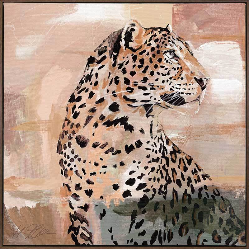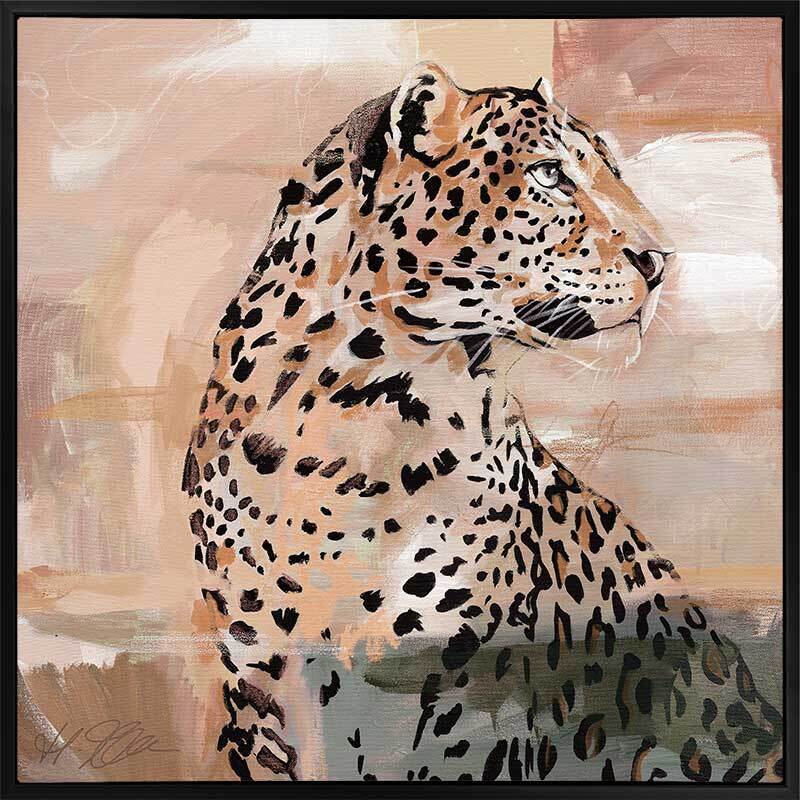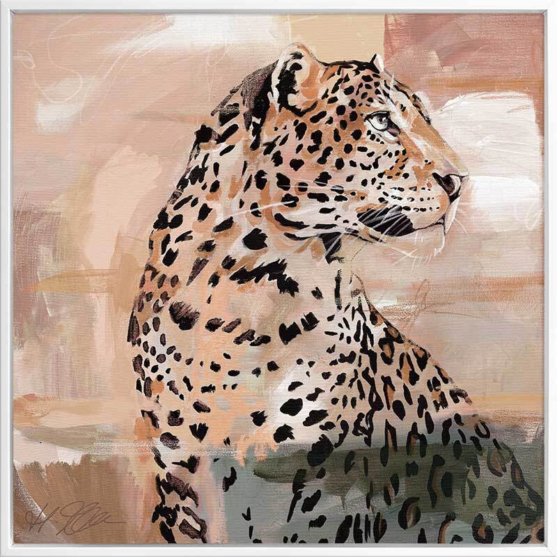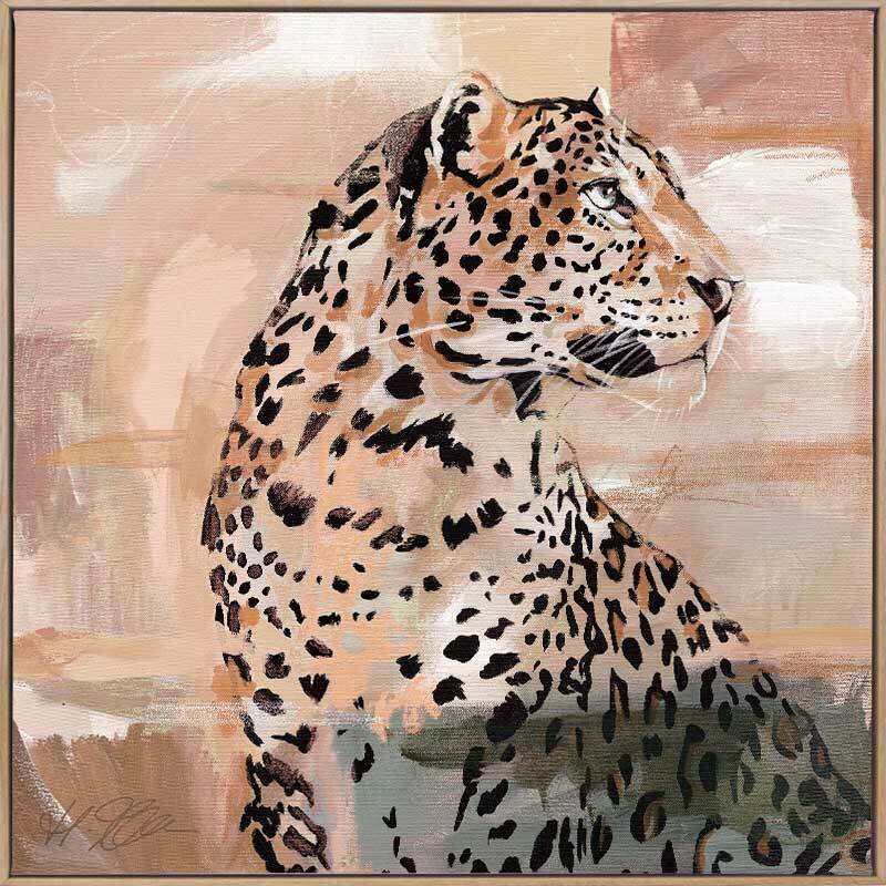 Reminiscent Clay Canvas Art Print - This showstopping piece makes a fierce statement in any space, sparking wonder and curiosity at what has this regal jaguar so intrigued. Featuring a neutral palette of clay-toned browns and unique blend of abstract and realism, this piece is easy to incorporate into any interior style.