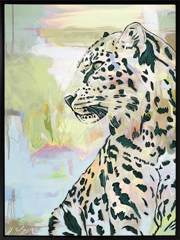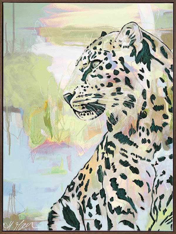 Self-taught artist Heylie Morris brings her dynamic collection of animals and female figures to Urban Road, focusing on the playfulness of Australian cockatoos and other native birds, as well as the majestic, powerful beauty of tigers, leopards and jaguars. This collection uses unique blends of colours and shapes, focusing on graphic brush strokes, detailed designs, and impactful colour palettes. Her rendition of the Australian Black Cockatoo is a particular standout, with beautifully detailed imagery and rich, vibrant colours.