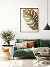 Retro Big Leaf II Canvas Art Print - This abstract still life of a single large leaf plant works with many interior design styles, with its versatile colour palette featuring sage green and orange-brown tones. A flat colour technique makes the subject stand out against the stark white background.
