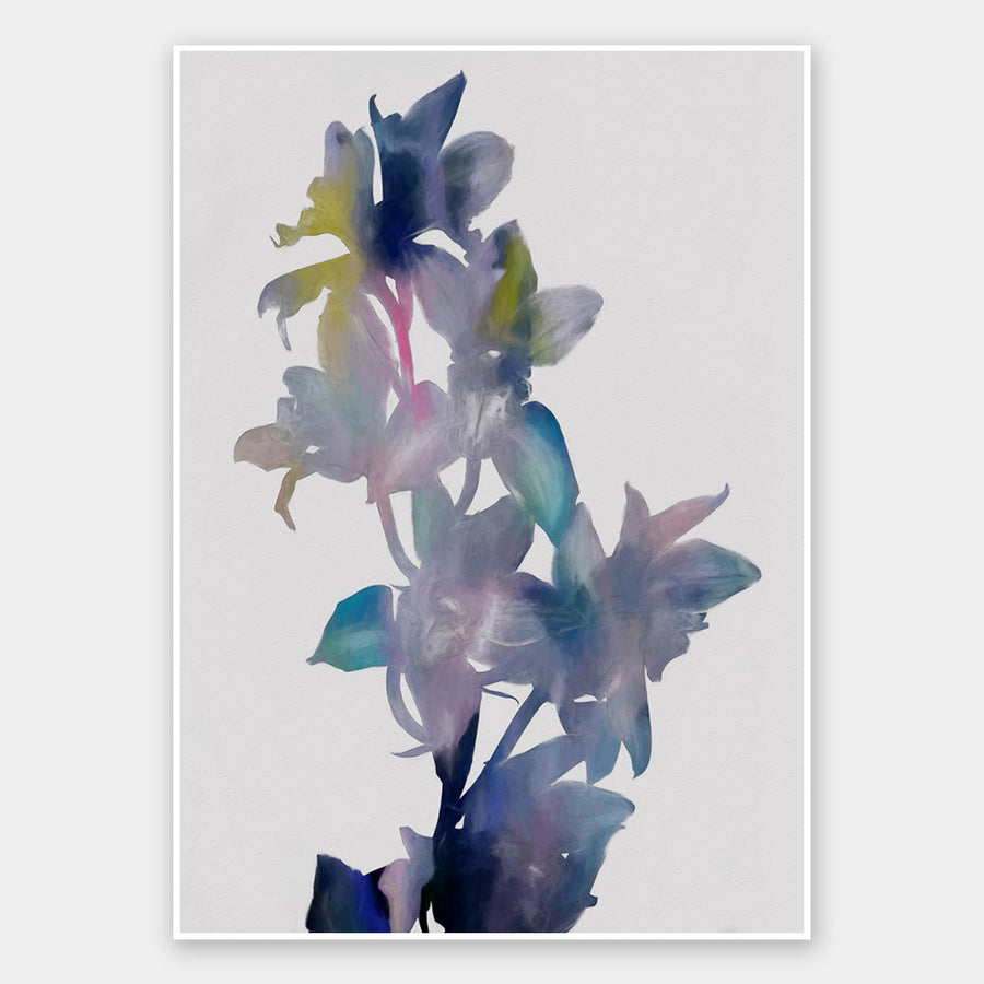 Reverie I Unframed - Abstract blue orchid flowers with pops of pink and yellow, a modern twist on a floral still life. 2016 WINTER COLLECTION: INSPIRE