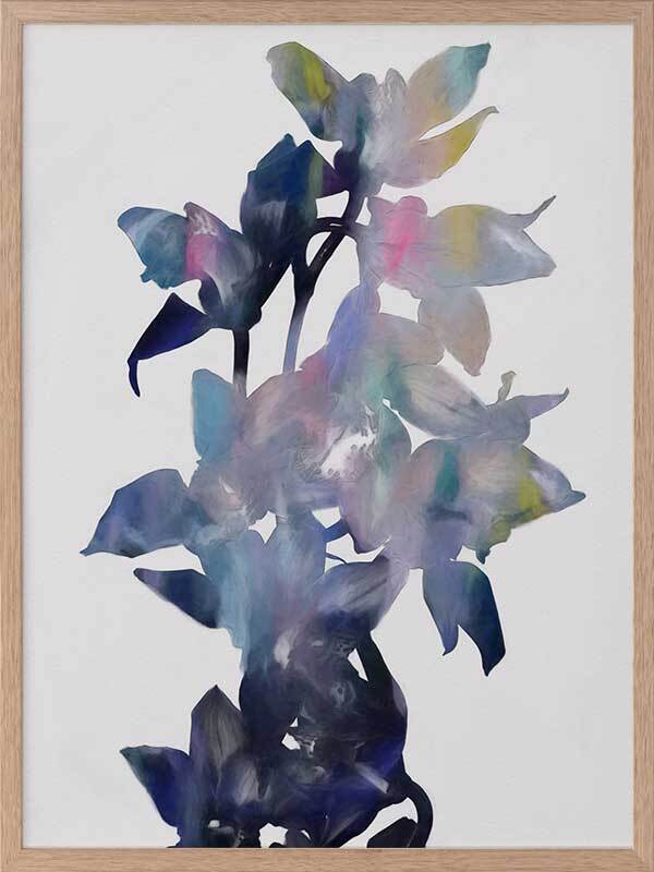 Reverie II Framed - Abstract blue orchid flowers with pops of pink and yellow, a modern twist on a floral still life. 2016 WINTER COLLECTION: INSPIRE