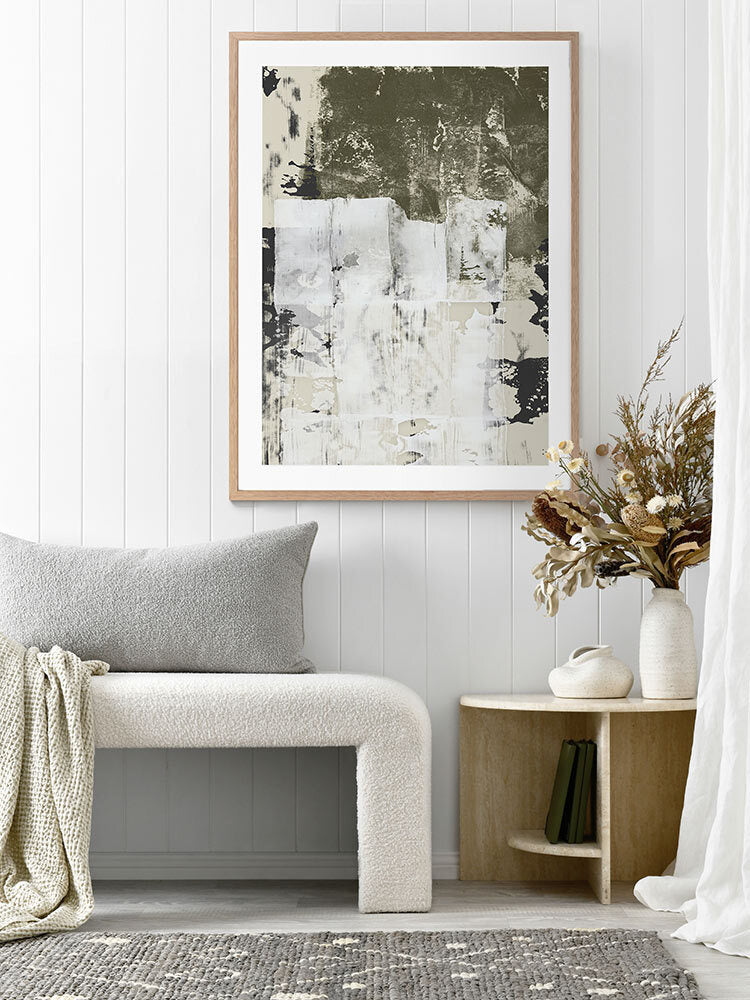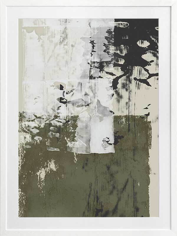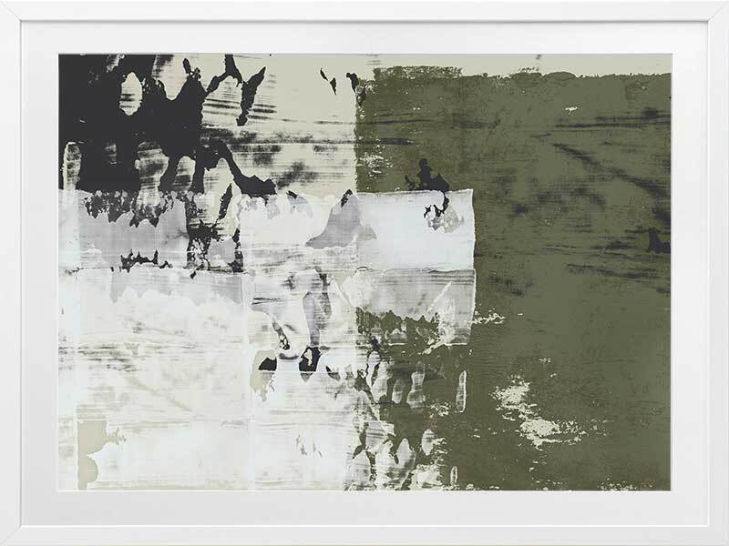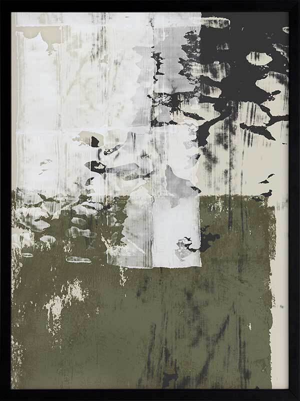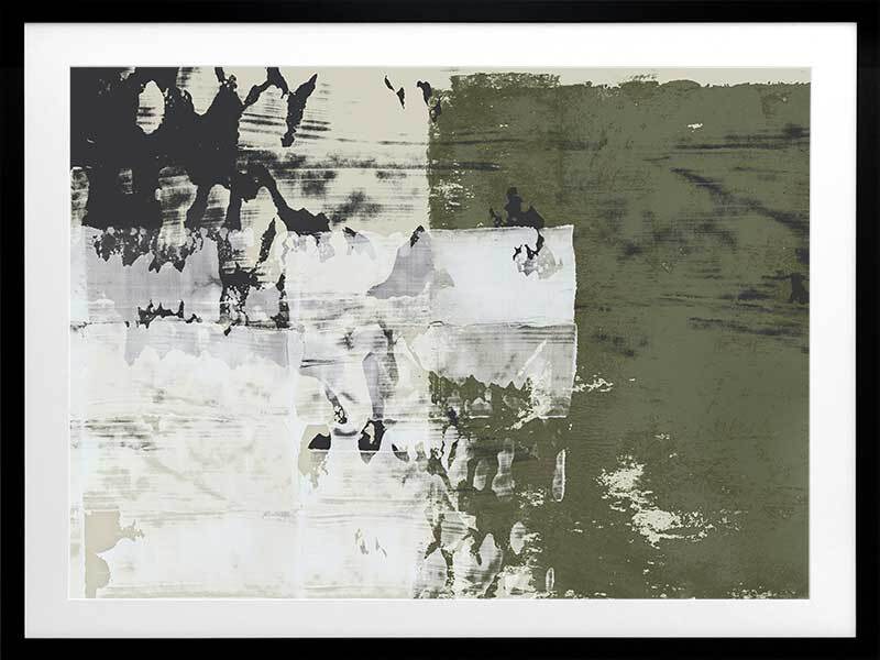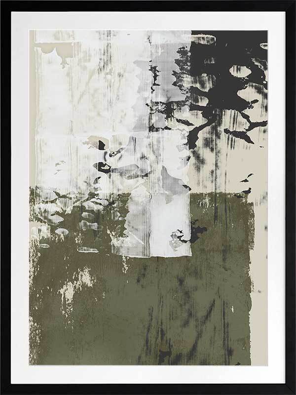 Reversed II Framed Art Print - Earthy and rugged, this pieces features a blend of abstract patterns and dashes, with a neutral palette of olive green, creamy beige, black, white and grey. With such simplicity, it's ideal for bringing a relaxed vibe to any space.