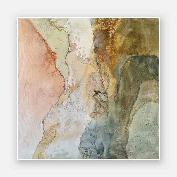 Ripples II Unframed Art Print - Take your bedroom art prints to the next level with this stunning abstract artwork, full of intricate detail created by overlapping colours of watery paint. Perfect to make a statement as oversized abstract wall art, this piece has a versatile palette of khaki green, blush, blue, and white.