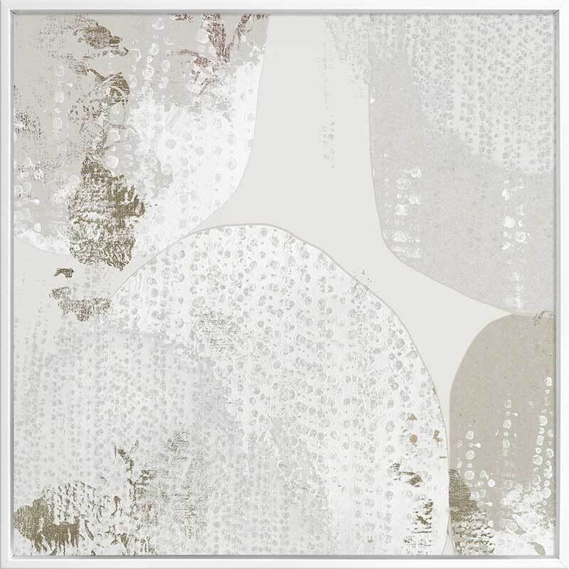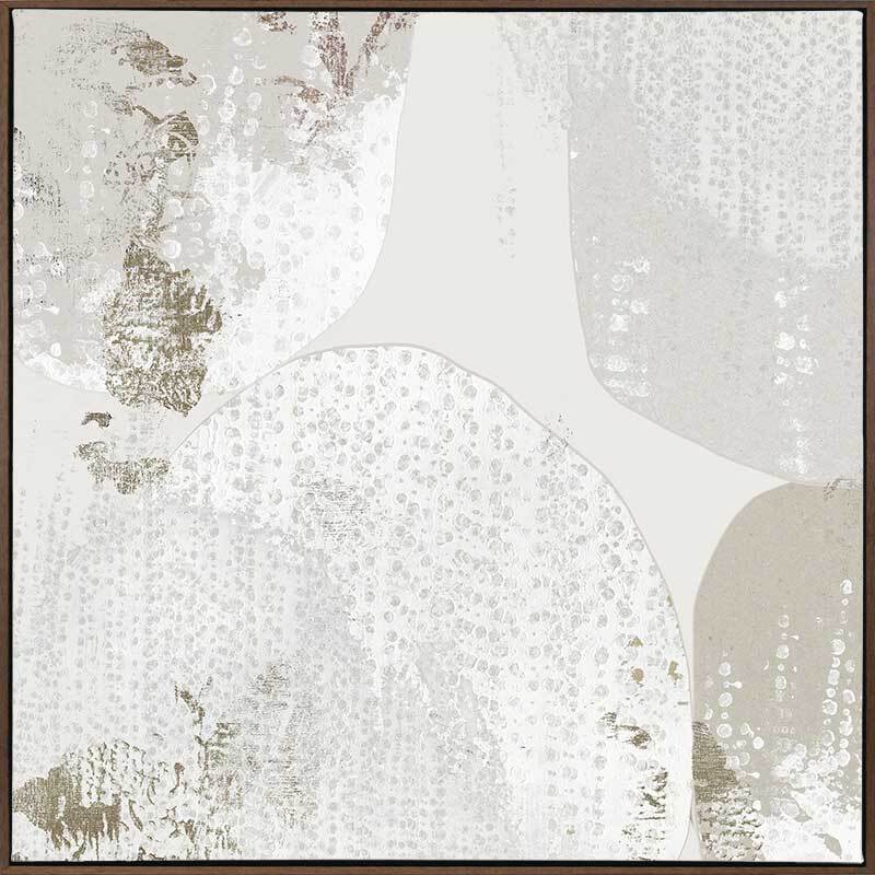 River stone Canvas Art Print - Tones of soft grey and white, this soft piece and its large forms evoke a riverbed and big river stones, caked with ancient fossils that remind us of a time gone by. Pair with Riverbed for a more dramatic effect.