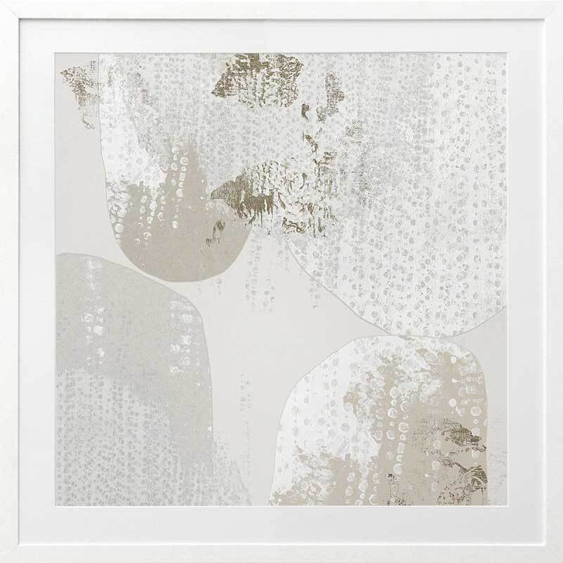 Riverbed Framed Art Print - Relaxing and restful in tones of soft grey, this soft piece will have you picturing the intricate microclimate of a riverbed, like big river stones overrun with moss, pebbles - and life. Pair with River Stone for a more dramatic effect.