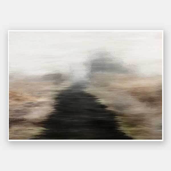 Joy Dawns Fine Art Print: A blurred landscape artwork featuring a rolling hillside against a muted pink sky with a hint of warm, orange sunlight. 2019 AUTUMN/WINTER COLLECTION: ODYSSEY