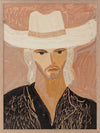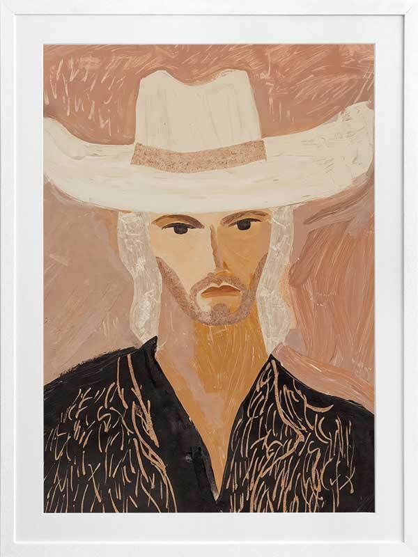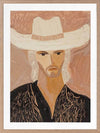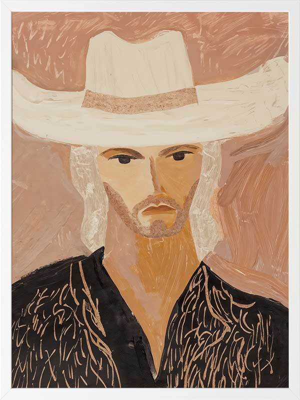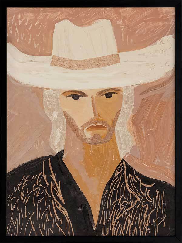Roam Free Framed Art Print - Turn on that country music because this artwork is all-over American Western vibes. Making a bold statement with textured brush strokes and a painterly composition, this piece features a cowboy in his cream-coloured cowboy hat, black patterned shirt, against a dusty rose backdrop.
