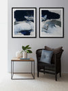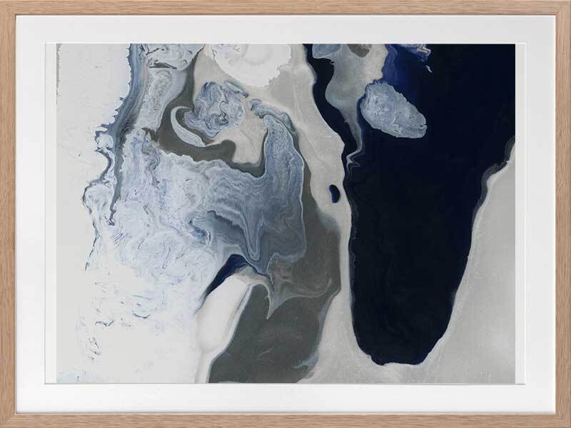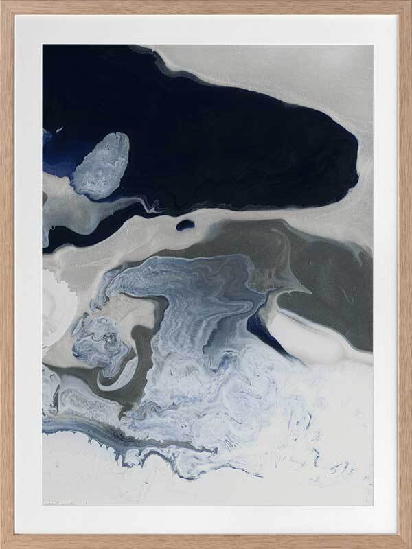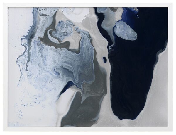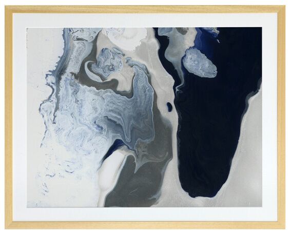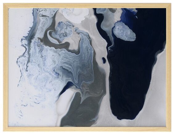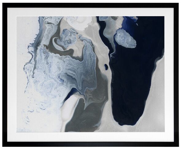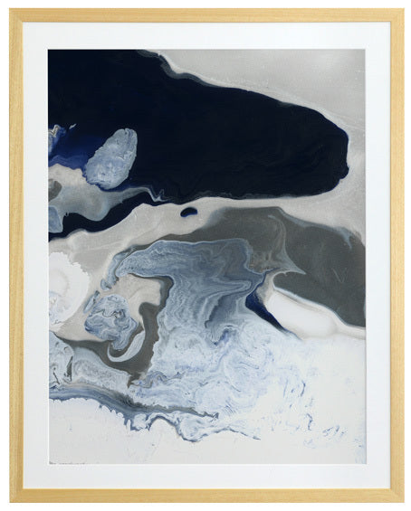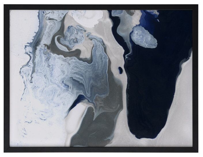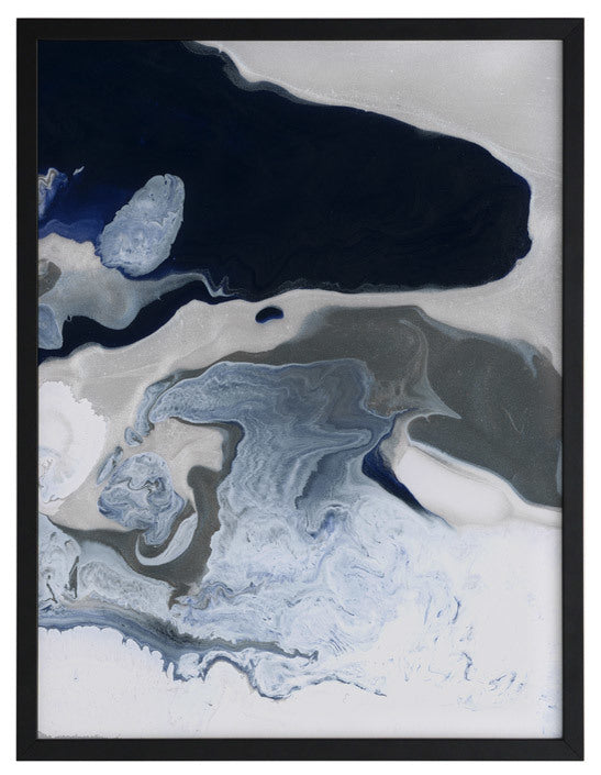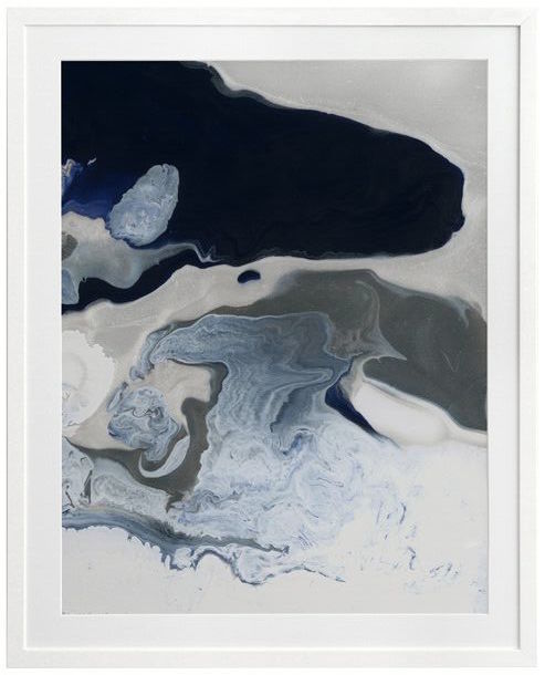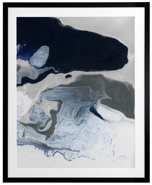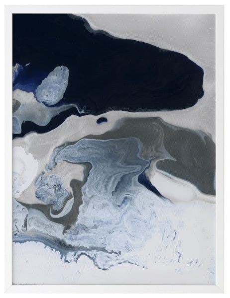 San Salvador Framed Print: A stunning abstract piece featuring marbled deep blue, white, and grey tones - reminscent of a swirling seascape. Pairs with Andros. 2017 SPRING/SUMMER COLLECTION: RHAPSODY