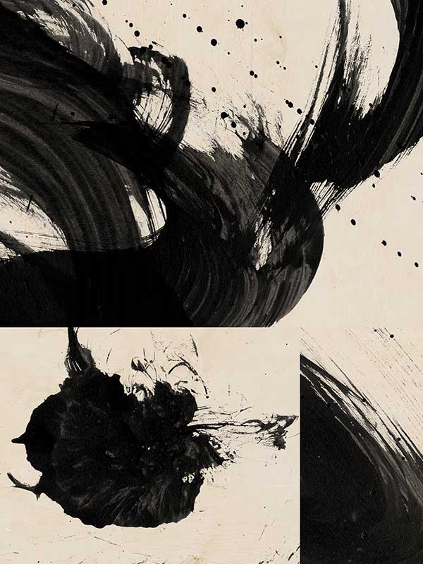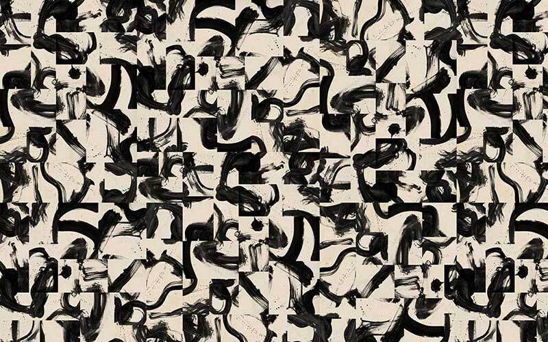 Scattered Pompeii Wallpaper Mural - A richly textured abstract design featuring a mosaic arrangement of messy brush strokes against a neutral beige background. Designs are available in light and dark colour variations.