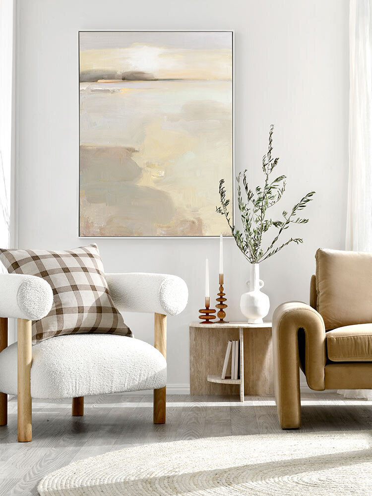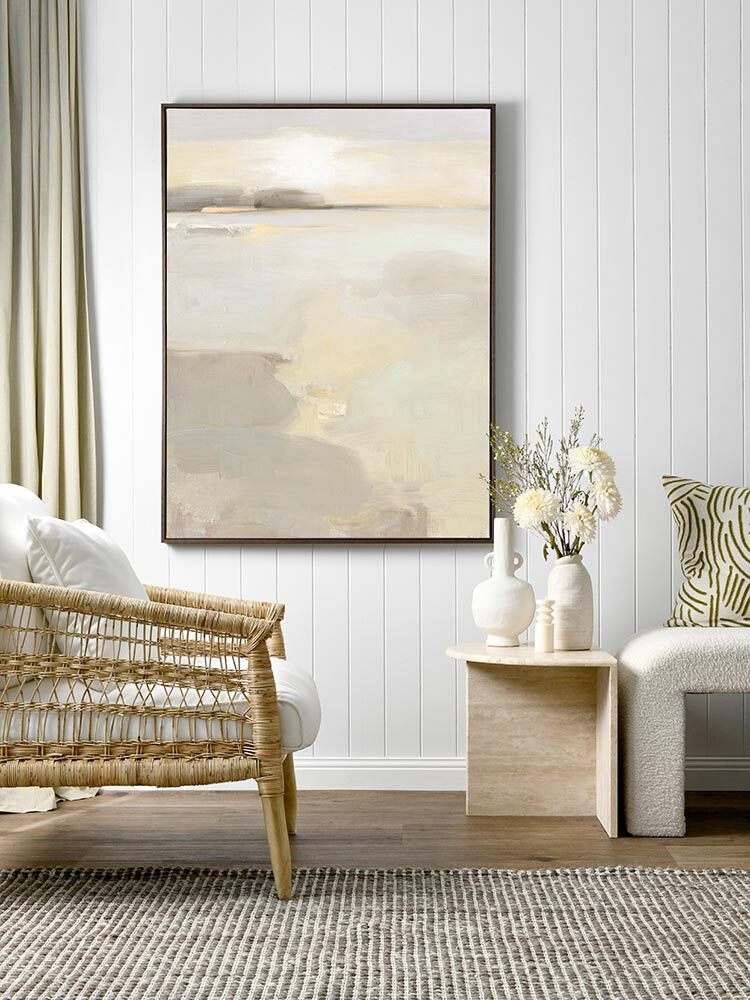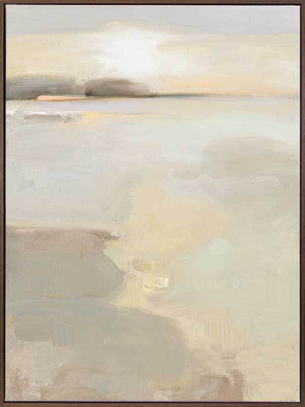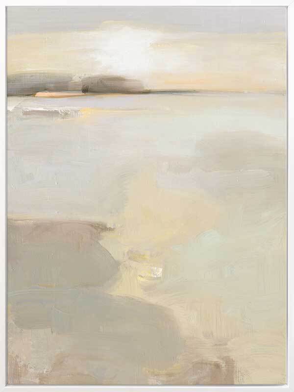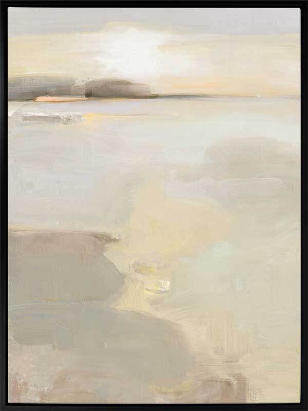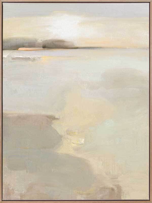 Sea Sense Canvas Art Print - Using uneven brush strokes and layers of fawn and grey to build texture, this abstract landscape evokes late afternoon on a cloudy day over a protected bay, inspiring purposeful rest and relaxation in a well-lit room. Calming muted natural pastels provide a warm and inviting feel into your home. This contemporary piece captures naturally harmonious shapes and colours. You'll feel a warm hug as you walk through the front door.