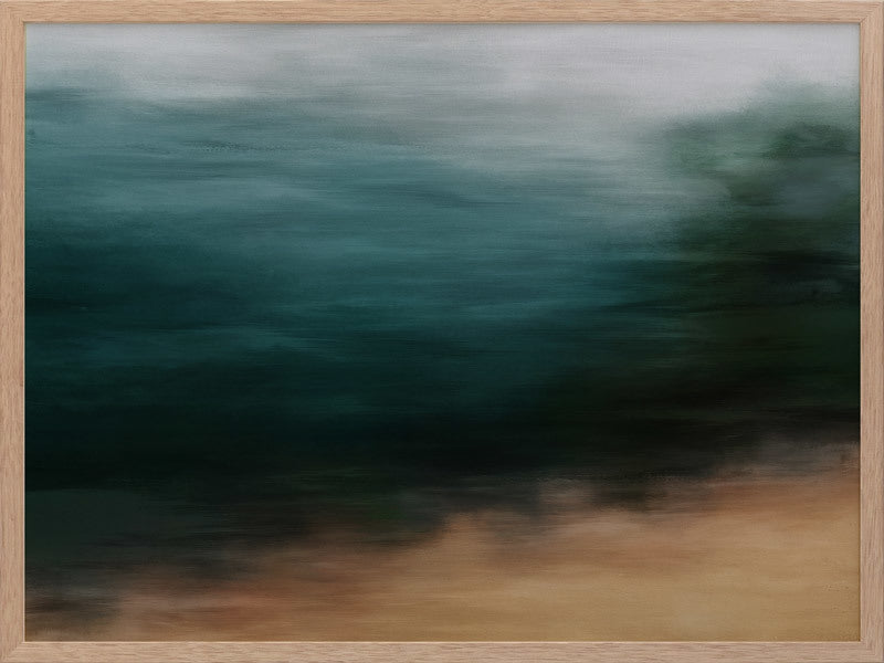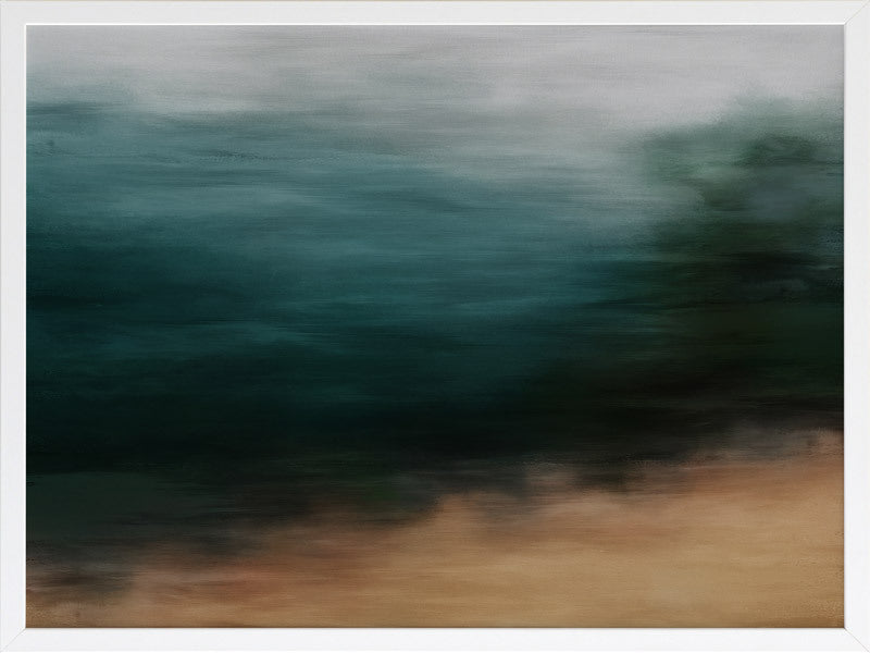 Second Look Framed Print: A blurred landscape artwork featuring a deep, emerald forest and golden-brown grass. 2019 AUTUMN/WINTER COLLECTION: ODYSSEY