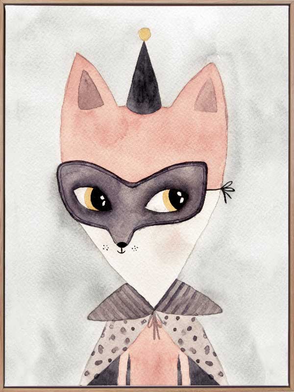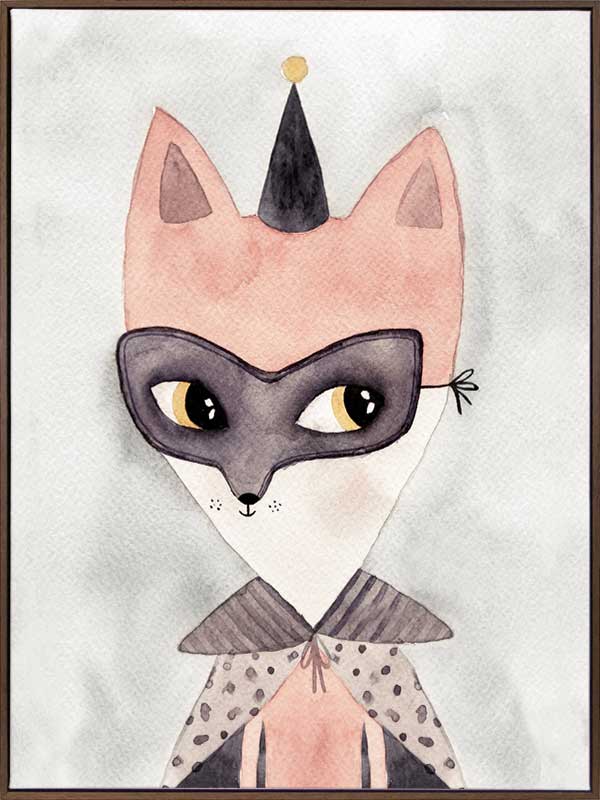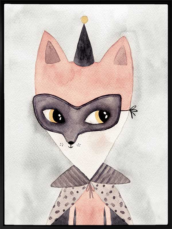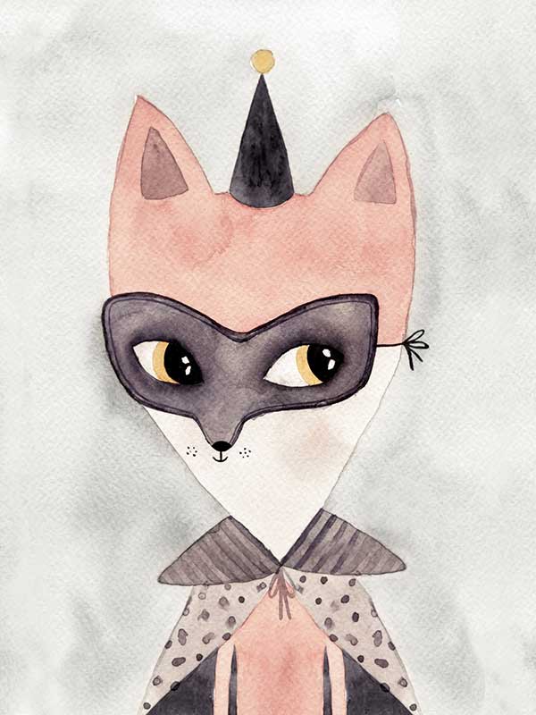 Secret Hero - A sweet pencil illustration of a fox - perfect for decorating a little girls room.
