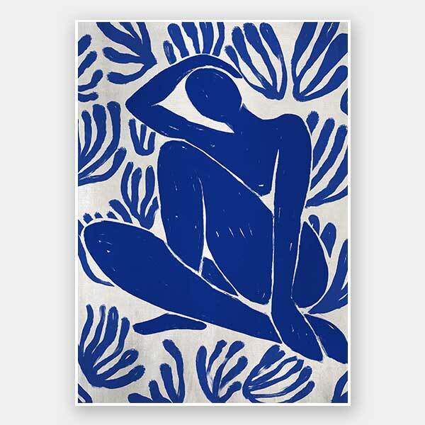 Self-Care II Unframed Art Print - Derived from the abstract work of Matisse, this piece uses a midnight blue shade complimenting a soft cream background. Featuring a human figure in the centre, sitting among organic leaf-like shapes, an overwhelming sense of serenity comes across with thoughtful, smooth brush strokes and uneven linework. An understated energy that brings character to any wall, suitable for most interior styles.