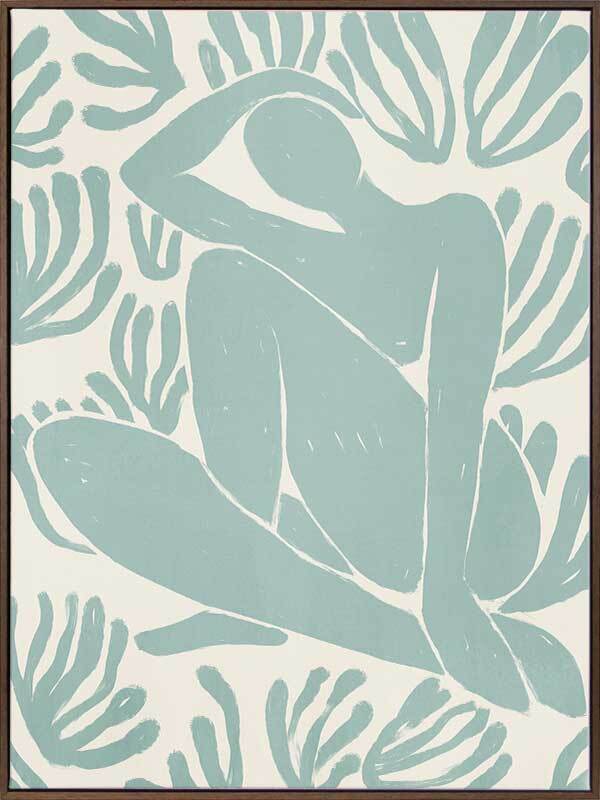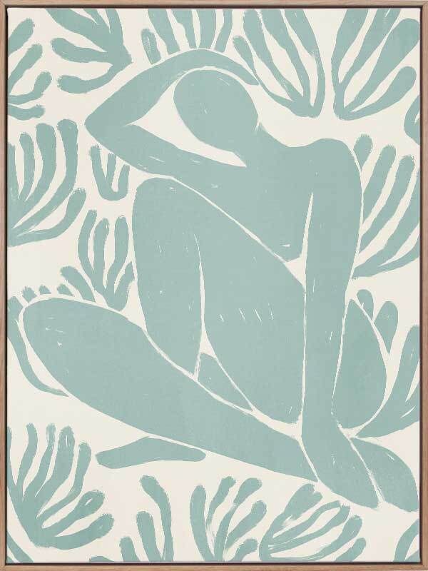 Self-Care III Canvas Art Print - Derived from the abstract work of Matisse, this piece uses a powder blue shade complimenting a soft cream background. Featuring a human figure in the centre, sitting among organic leaf-like shapes, an overwhelming sense of serenity comes across with thoughtful, smooth brush strokes and uneven linework. An understated energy that brings character to any wall, suitable for most interior styles.