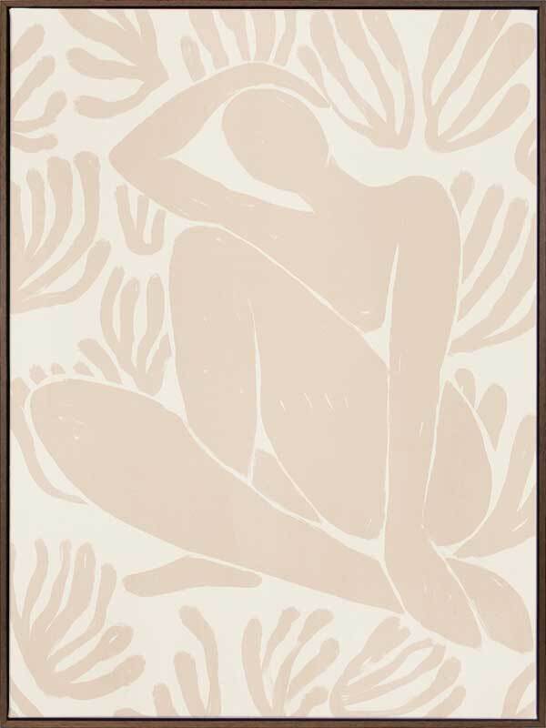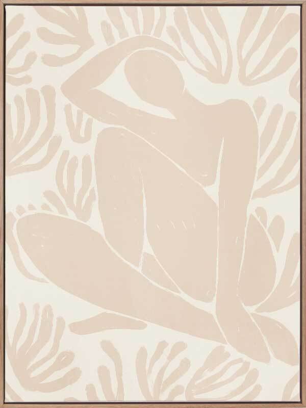 Self-Care IV Canvas Art Print - Derived from the abstract work of Matisse, this piece uses a soft peach shade complimenting a soft cream background. Featuring a human figure in the centre, sitting among organic leaf-like shapes, an overwhelming sense of serenity comes across with thoughtful, smooth brush strokes and uneven linework. An understated energy that brings character to any wall, suitable for most interior styles.