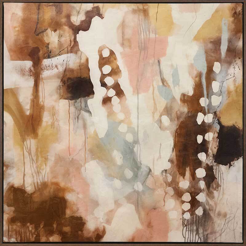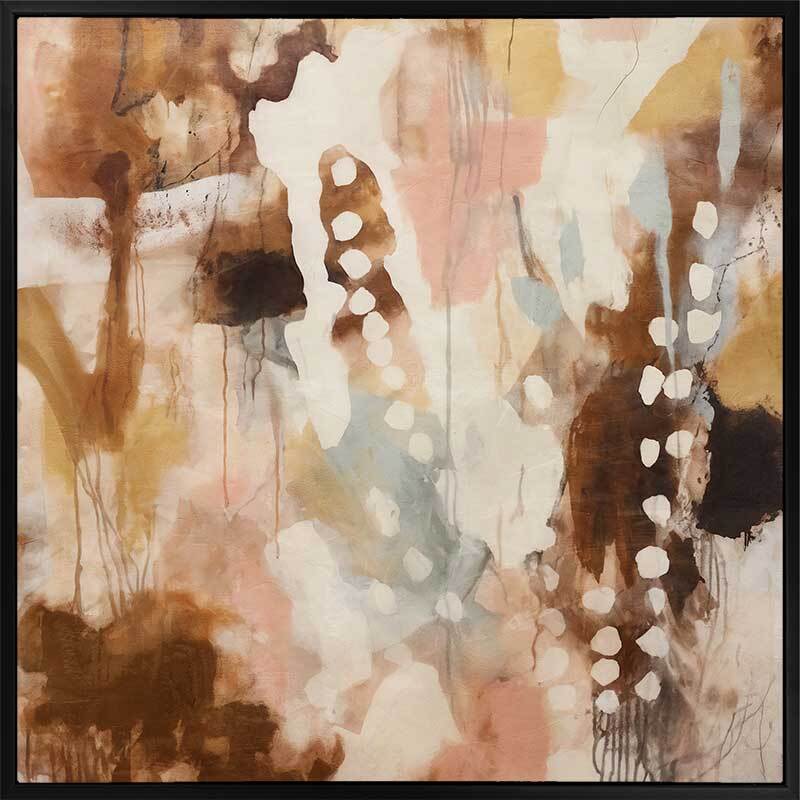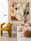 Sepia Serenity I Canvas Art Print - Earthy sepia tones meld into a dance of subtle complexity in this abstract artwork, which draws the eye with its gentle interplay of random shapes, dots, and brush strokes. A nod to watercolour, this piece infuses any space with contemporary calm using a blend of brown, yellow, cream, and pink shades. Pair with Sepia Serenity II.