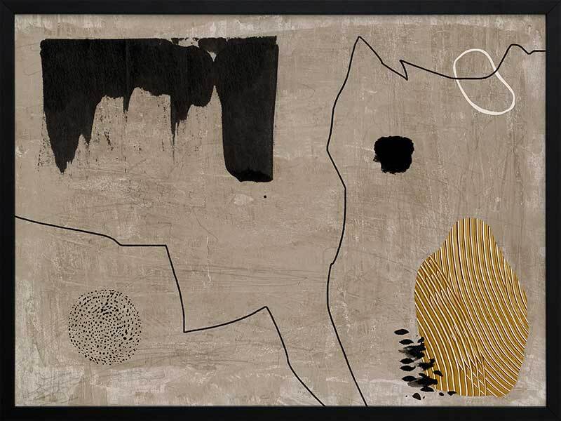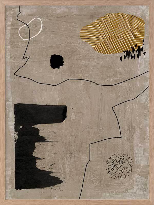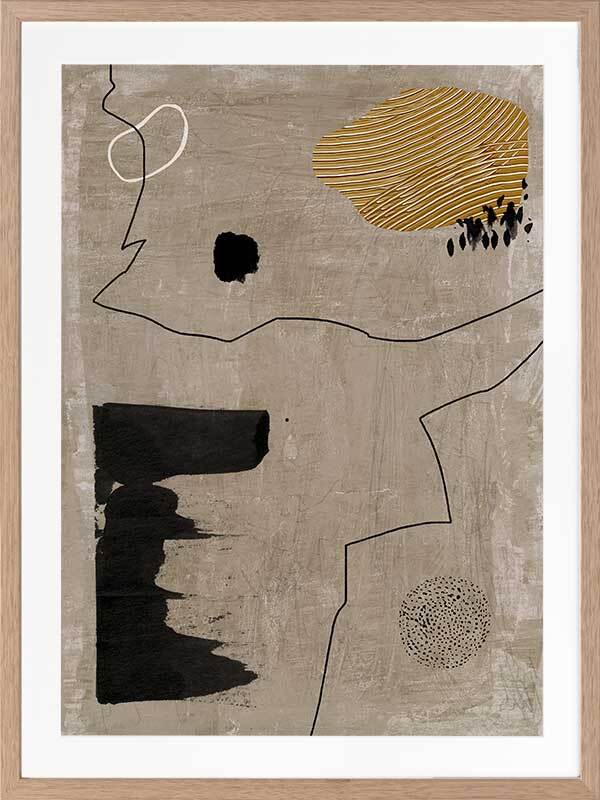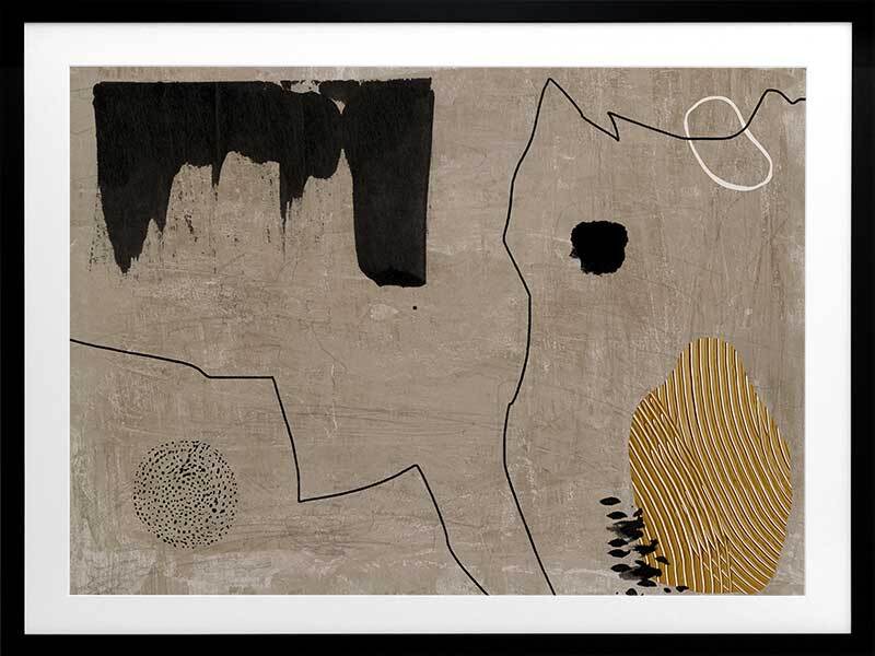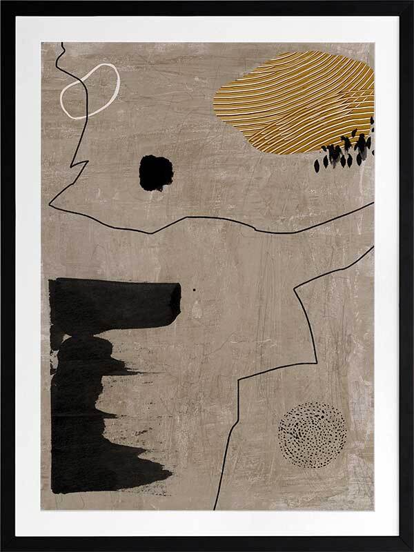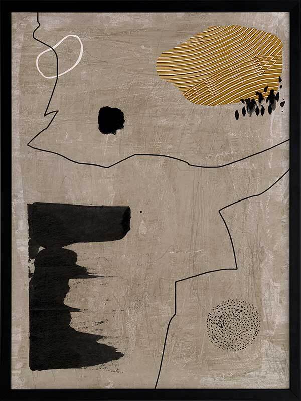 Set in Stone III Framed Art Print - Chaotic textures, strokes and shapes overlap in this earthy abstract piece, featuring a cool brown and black colour palette, with a touch of gold. Pairs with Set in Stone I and II.