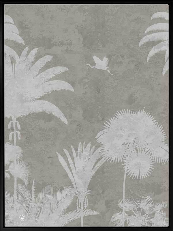 Shadow Palms Beige III Canvas Art Print - Just as the sun rises with its soft, gentle light, wildlife begin to stir, basking in the warm, early rays. This gorgeous piece focuses on simplicity with a subdued, monotone colour palette and limited details, leaving an array of shadow figures, allowing the aged texture to overlap each silhouette for a timeless feel. With its beige and white palette, Shadow Palms is striking, yet delicate on the eye, making it the perfect feature piece for any interior.