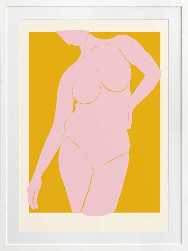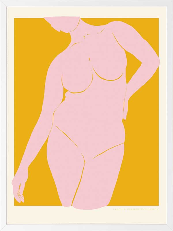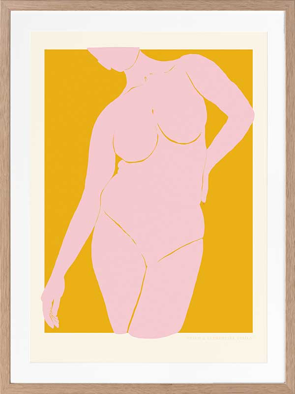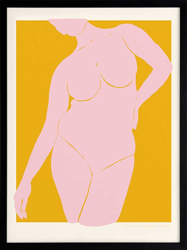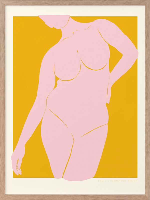 She’s Golden Framed Art Print - A vibrant celebration of feminine confidence, this retro poster art piece by Jenny Liz Rome captures strength and beauty in a minimalist yet striking way. The warm golden backdrop enhances the soft pink silhouette, creating an effortlessly chic statement. Perfect for those who love pinup artwork with a modern, refined twist, this piece complements many interiors. Whether styled solo or paired with other cool artwork prints, it brings an artistic edge to any interior, from contemporary spaces to eclectic bohemian art collections.