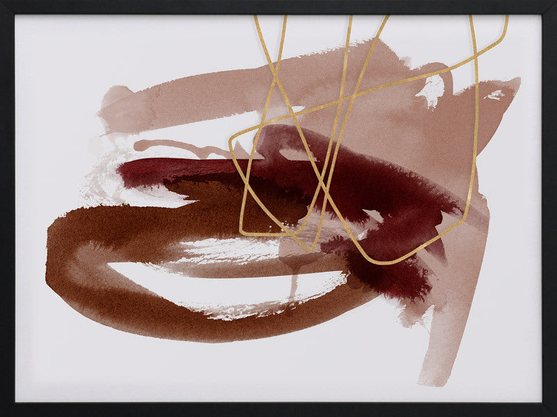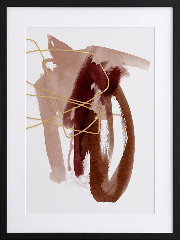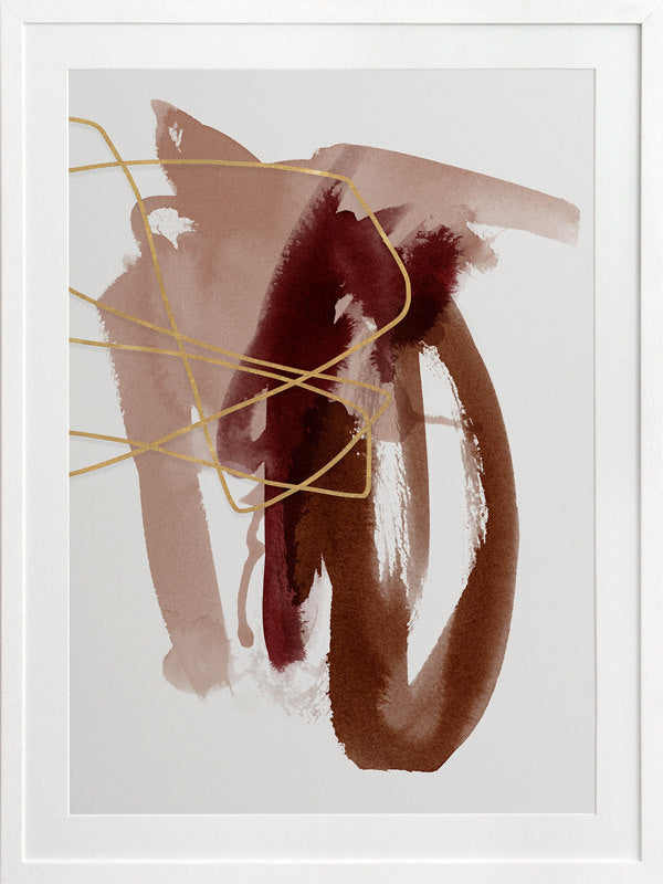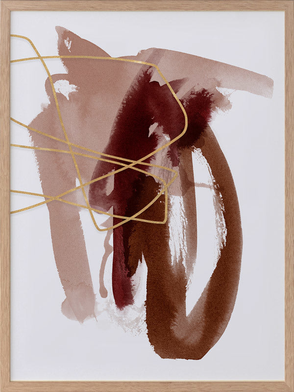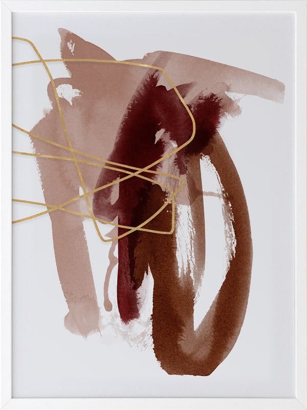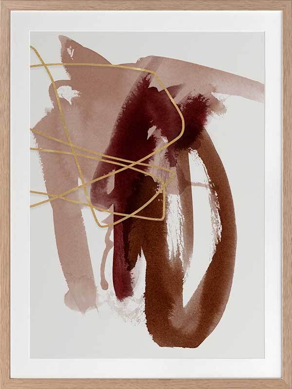 Sienna Sketch II Framed Print: A beautifully balanced abstract artwork that features dusty pink, burnt sienna and scarlet brush strokes, overlaid with a fine, golden-brown scribble. Pairs with Sienna Sketch I. 2019 AUTUMN/WINTER COLLECTION: ODYSSEY