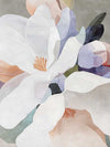 Silk Petals II Canvas Art Print - A delicate interplay of softness and depth, this floral wall art captures the quiet beauty of flowers. Layers of white, blush, and soft lavender petals unfold against rich earthy hues, creating a sense of effortless grace. This botanical art print makes a perfect addition to any interior, seamlessly complementing modern, classic, or bohemian spaces.