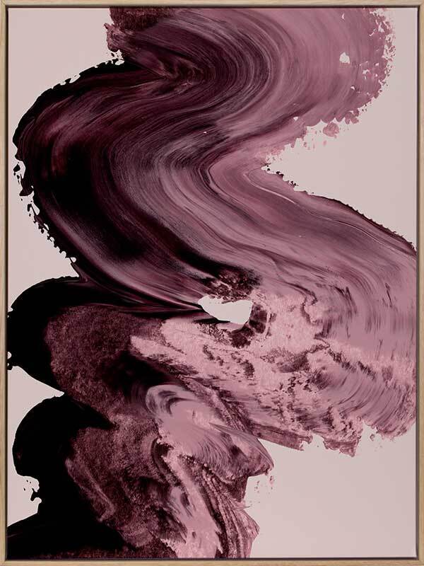 Sleight of Hand Canvas Art Print: A moody abstract artwork featuring a winding, textured burgundy paint stroke on a nude background. Pairs with Grand Gesture. 2018 AUTUMN/WINTER COLLECTION: CONTINUUM