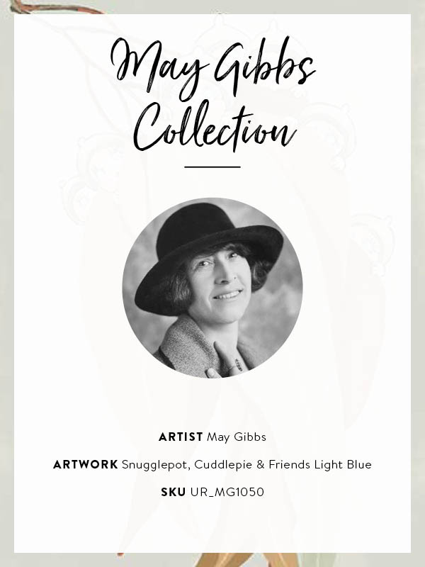 Inspired by the beloved illustrations of Australian author and illustrator May Gibbs, this collection captures the whimsy, nostalgia, and playfulness of her iconic Gumnut Babies and other bushland creatures, Australian flora and fauna, and more.