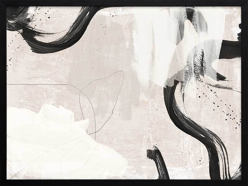 So Far So Good II Framed Art Print - A bold abstract piece in its composition using rough brush strokes, lines, and overlapping shades, this artwork has a minimalistic quality to it with a simple colour palette making it perfect for any interior style. Colours include soft beige tones, black, and off-white.
