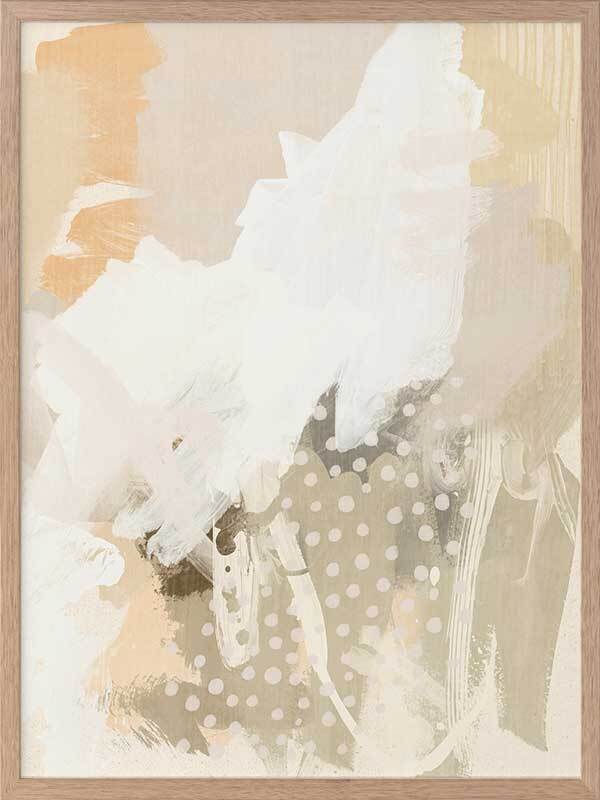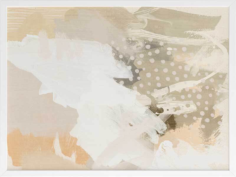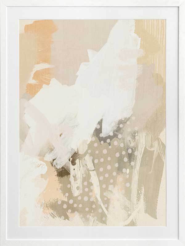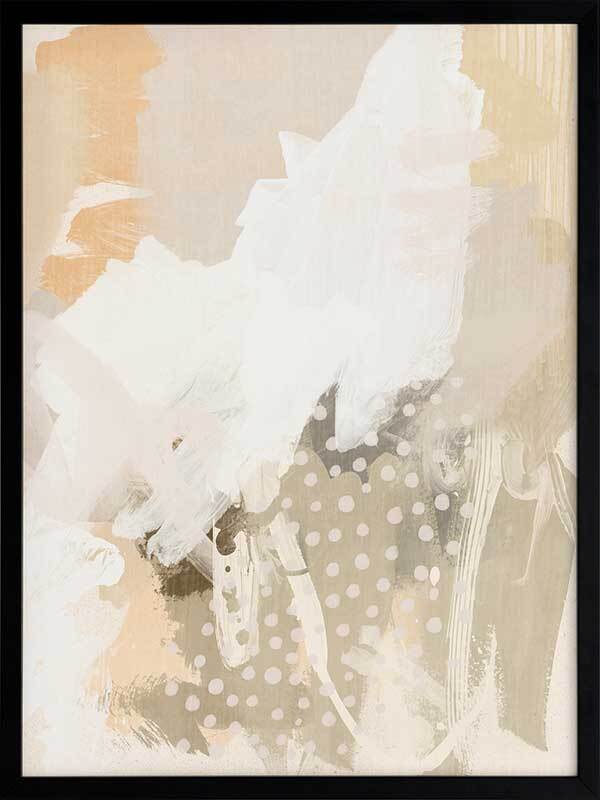 Soft Mess Framed Art Print - Like most things in nature, there's beauty in the mess. This abstract piece uses messy brush strokes, dots and lines that are contrasted by the soft, subdued neutral tones including white, beige, and muted pink - making this an easy piece to incorporate into any interior style.