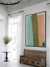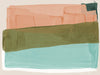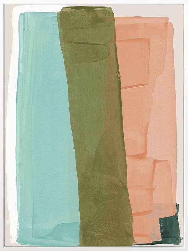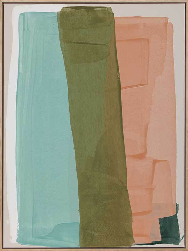 Soho Canvas Art Print: A simple abstract artwork featuring bold, overlaid aqua, khaki and peach paint strokes. 2020 AUTUMN/WINTER COLLECTION: REVERIE