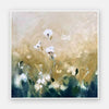Song in the Wilderness I Unframed Art Print - This piece of modern wall art presents a serene tableau, where ethereal white blossoms rise gracefully against a backdrop of golden warmth. The dominant colours – a mix of creamy golds, soft whites, and deep greens – create a restful harmony perfect for any living room wall art collection. The style, a blend of impressionism and abstraction, evokes a gentle, dreamlike mood.