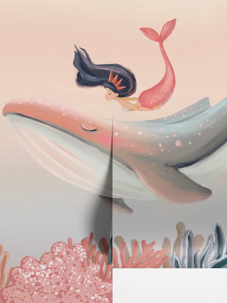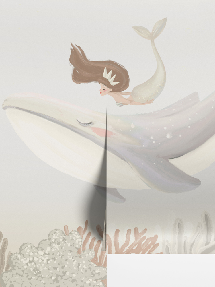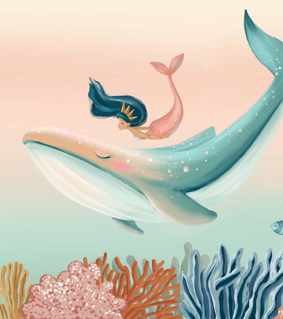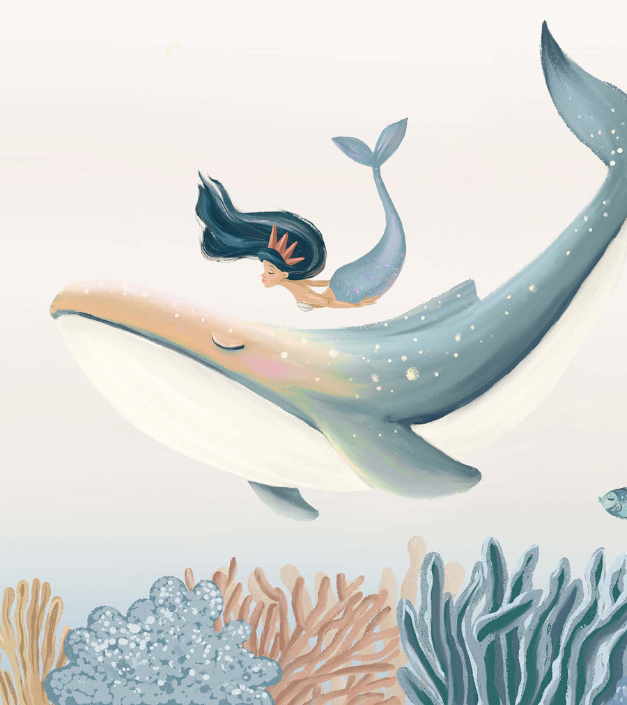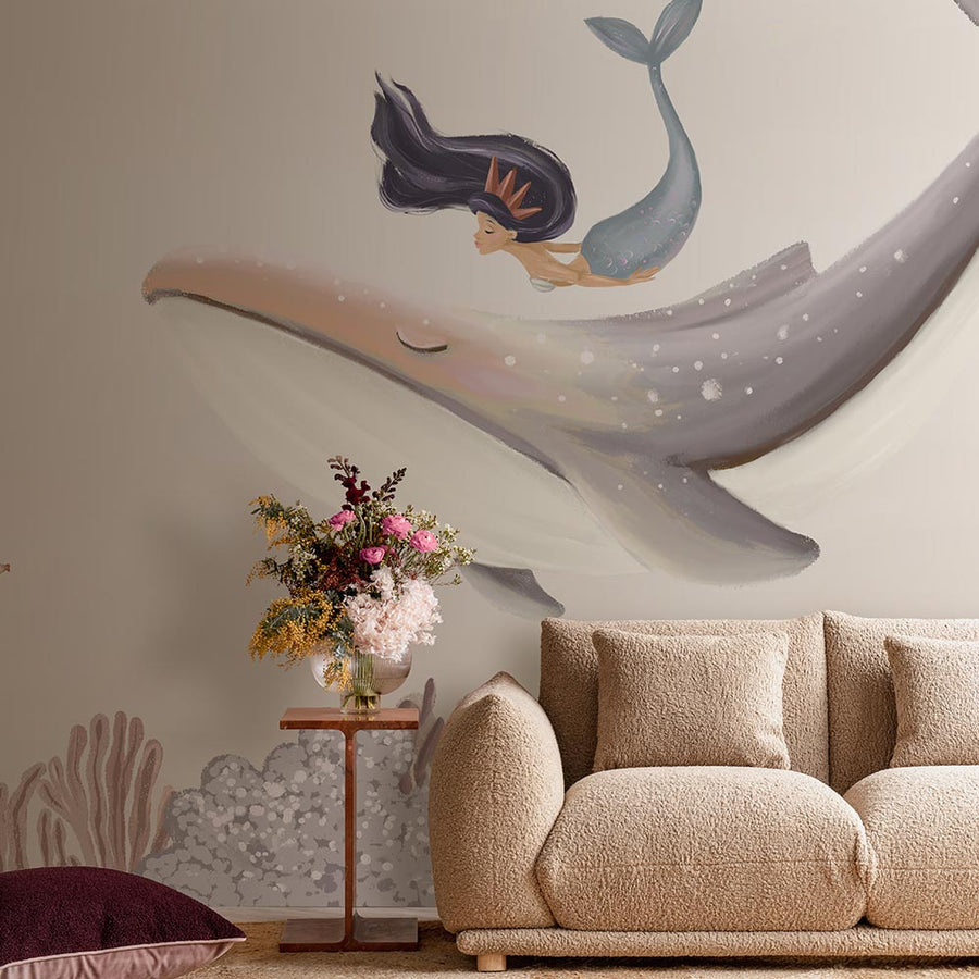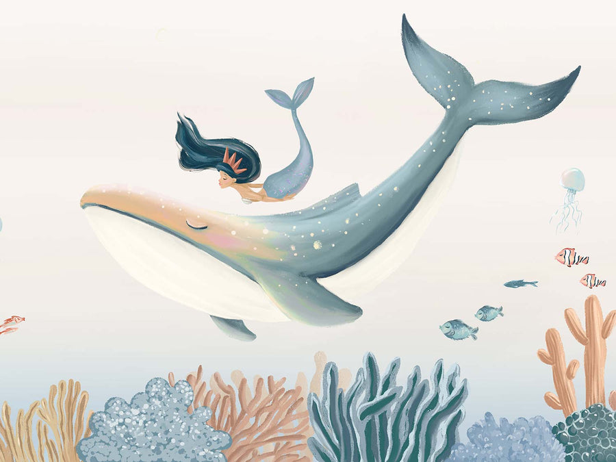 Songs of the Sea Wallpaper Mural - Drift into a dreamy underwater world where friendly whales and mermaids glide through a coral-filled ocean, accompanied by playful fish and gentle sea creatures.