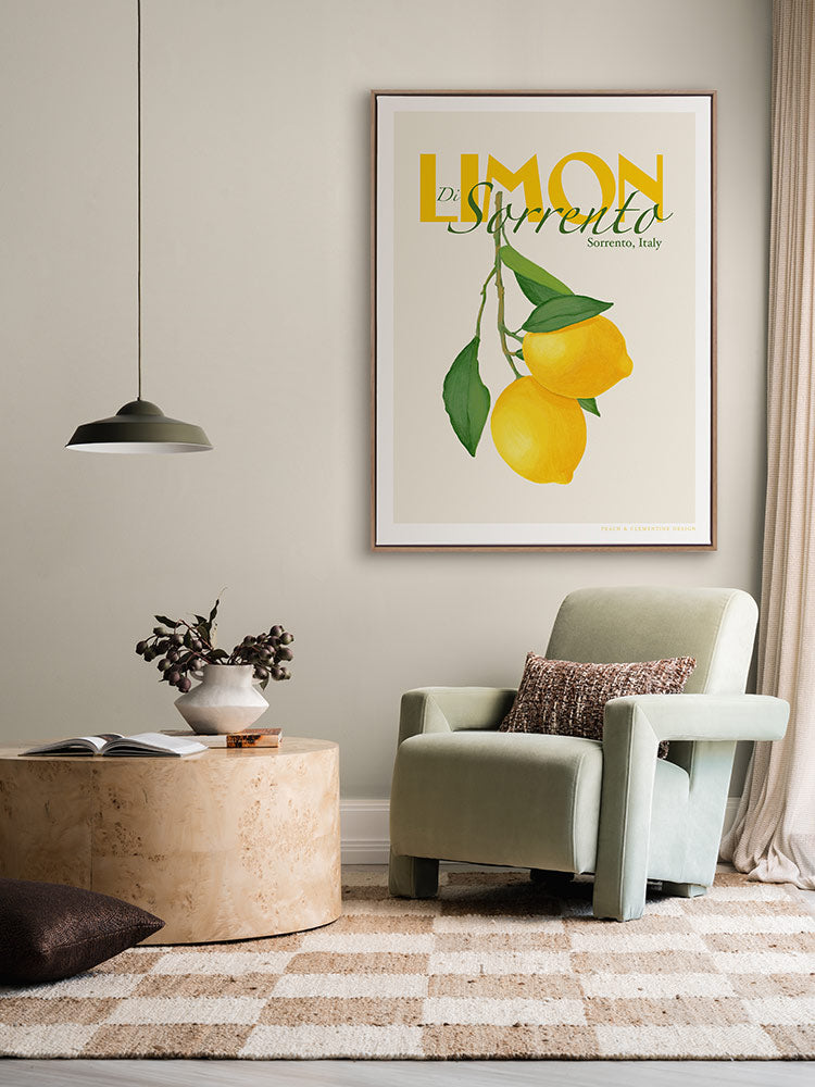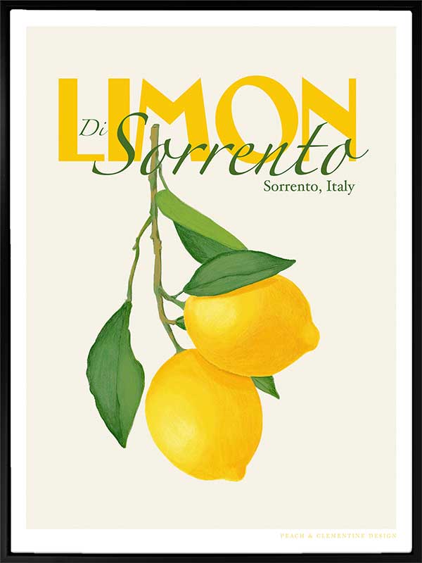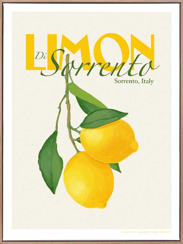 Sorrento Lemons Canvas Art Print - Zesty and full of Mediterranean charm, this retro poster art print by Jenny Liz Rome brings the essence of the Amalfi Coast to your space. Featuring vibrant yellow lemons and elegant typography, it’s a refreshing take on boho style wall art with a sophisticated edge. Perfect for kitchens, dining spaces, or sun-drenched interiors, this piece adds a touch of effortless European flair. Whether styled alone or as part of a gallery wall, it captures the timeless beauty of retro beach prints, evoking lazy afternoons and citrus-scented breezes.