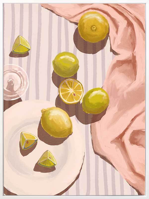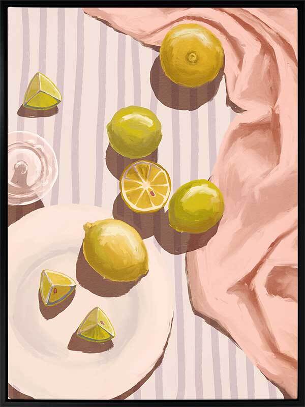 The Citrus II Collection captures all the comfort we feel on those sweet summer mornings and lazy summer afternoons, basking in the sun, surrounded by loved ones, and thinking about nothing. What makes this collection standout is its focus on fresh summer fruits, from juicy lemons, to sour limes, honey figs, sweet pears, and scrumptious blood oranges. Warm tones of yellow, orange, red, and pink are carried throughout, with undertones of soft grey and beige for a mellowed feel, making these artworks versatile for many interior design styles. Using flat colours and soft brush strokes, this hand painted collection is just what you need to lighten up and refresh your space.