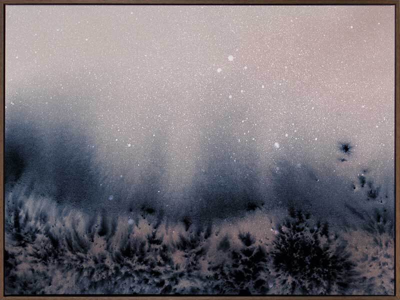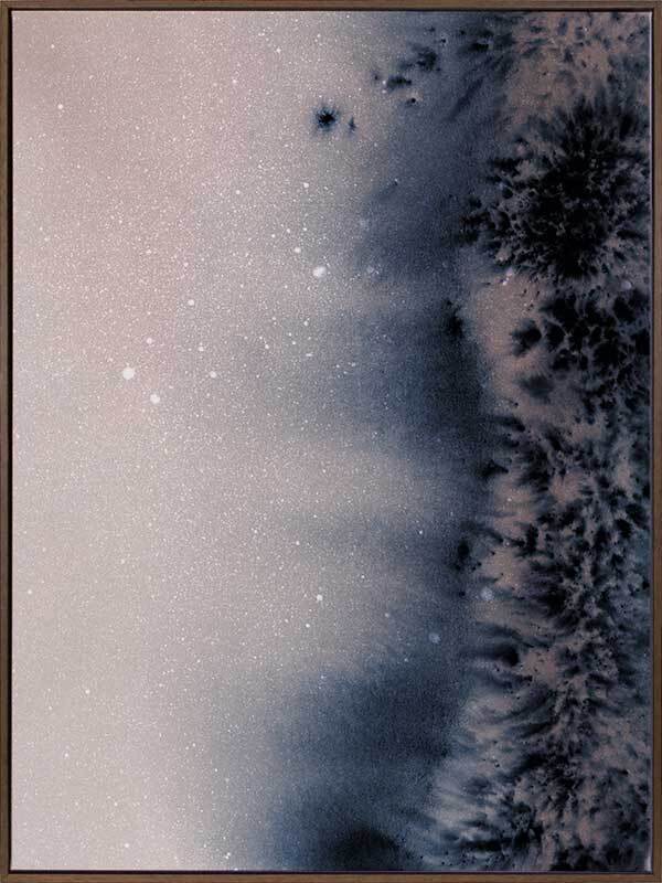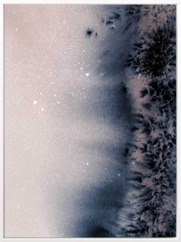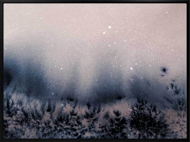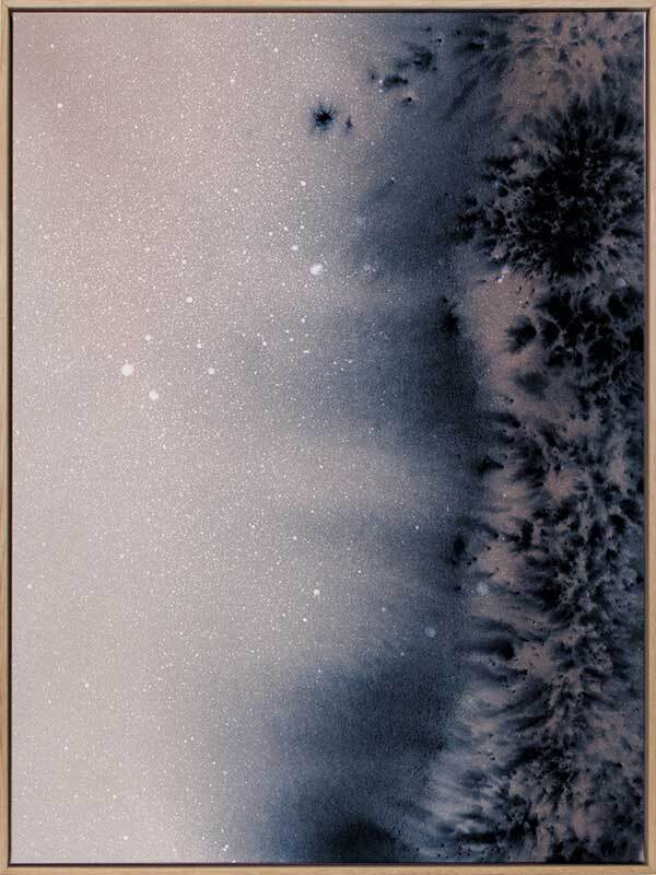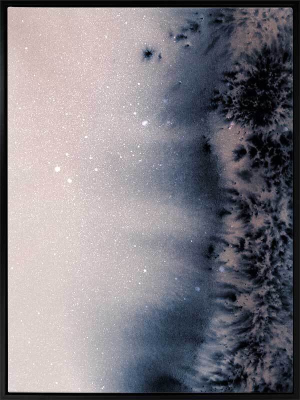 Southern Cross Canvas Art Print: A soft, watercolour artwork inspired by the wonder of the night sky. Features a beautiful blended colour palette of soft mauve and indigo, and a scattering of white stars. 2018 SPRING/SUMMER COLLECTION: REMINISCE
