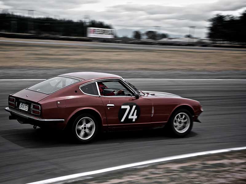 Speed Racer - A rich photographic image of a red race car on the track.