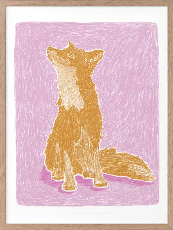 Spirit of the Fox Framed Art Print - Bold and full of character, this retro poster artwork captures the mystique of the fox in a striking boho style wall art design. Set against a soft pink backdrop, the golden fox exudes both wisdom and whimsy. Whether styled in a modern bohemian art collection or as part of a curated selection of cool art prints, this artwork by Jenny Liz Rome offers a fresh take on nature-inspired decor. A perfect choice for lovers of retro prints Australia, it blends effortlessly with earthy, eclectic, or contemporary interiors.