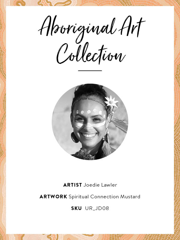 Spiritual Connection Mustard Canvas Art Print - This exquisite Aboriginal Wall Art brings a lively, playful energy to your space with a dynamic design of curved lines, spirals, and dots, created using traditional Aboriginal Art techniques. With a simple colour palette of soft orange and mustard yellow shades, this art print is easy to merge with any interior style. A piece of modern Aboriginal Art, this work showcases the remarkable talent and cultural heritage of a skilled local Aboriginal Artist, making it a true embodiment of Indigenous Artistic expression and storytelling.