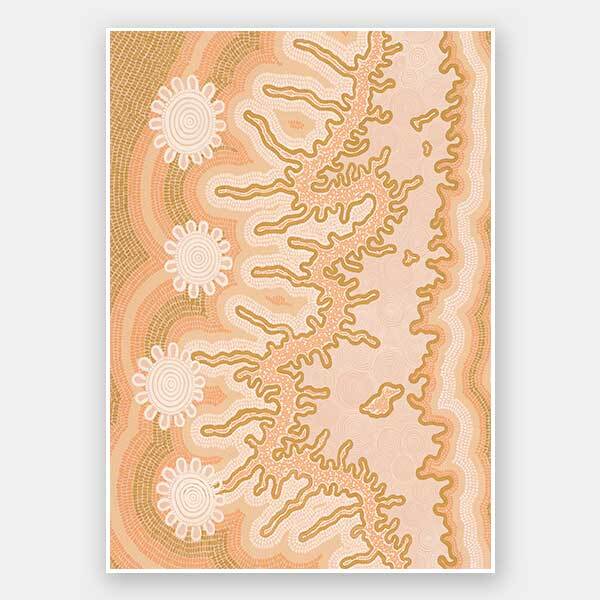 Spiritual Connection Mustard Unframed Art Print - This exquisite Aboriginal Wall Art brings a lively, playful energy to your space with a dynamic design of curved lines, spirals, and dots, created using traditional Aboriginal Art techniques. With a simple colour palette of soft orange and mustard yellow shades, this art print is easy to merge with any interior style. A piece of modern Aboriginal Art, this work showcases the remarkable talent and cultural heritage of a skilled local Aboriginal Artist, making it a true embodiment of Indigenous Artistic expression and storytelling.