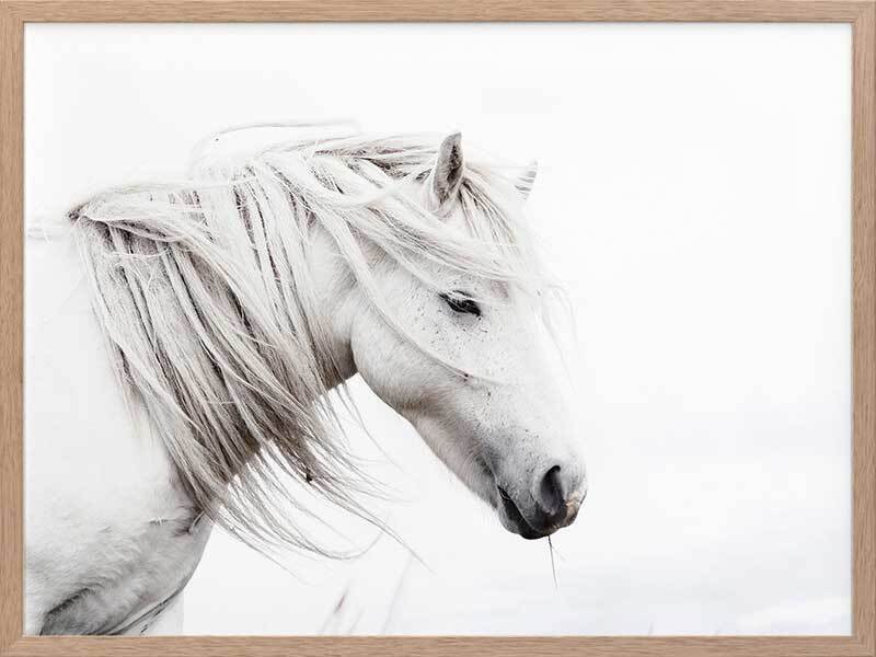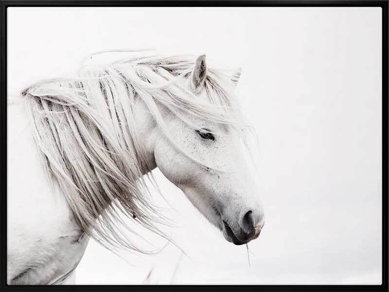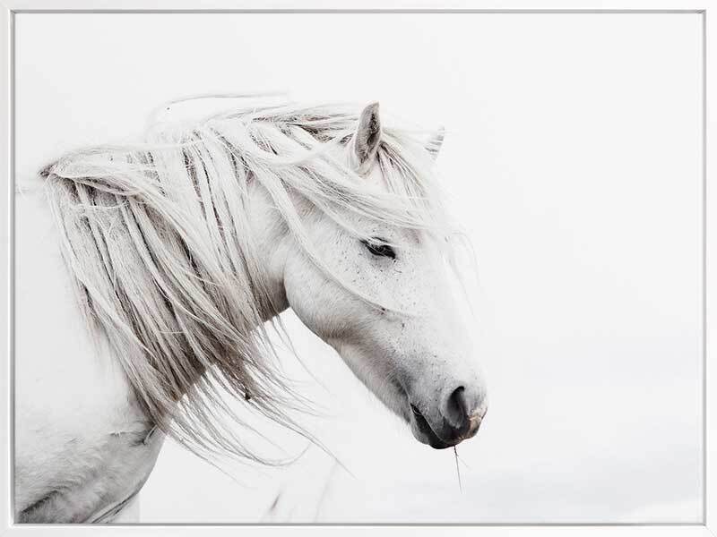 Stallion Art Print - A striking black and white photographic portrait of a beautiful white Icelandic horse. 2019 GIGJA EINARSDOTTIR COLLECTION Gigja Einarsdottir is an Icelandic photographer who specialises in capturing the beauty and energy of Icelandic horses and landscapes in her photographic work.