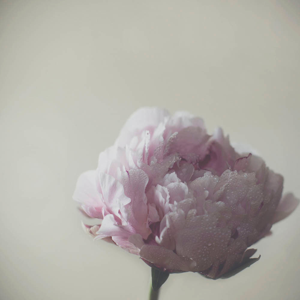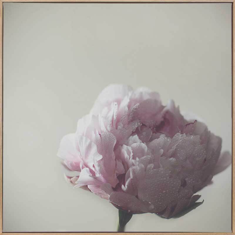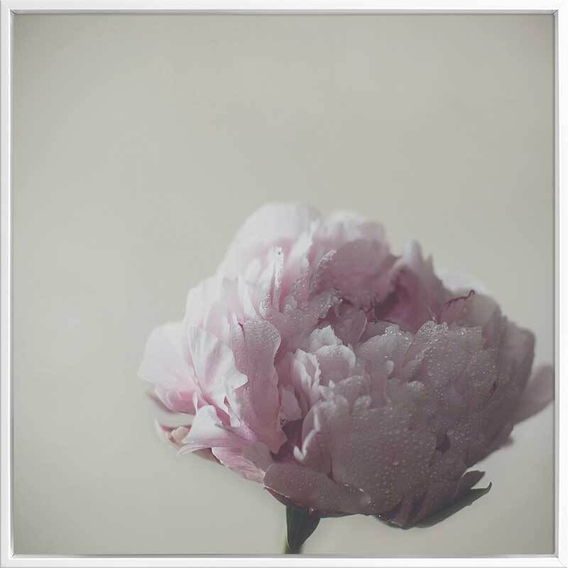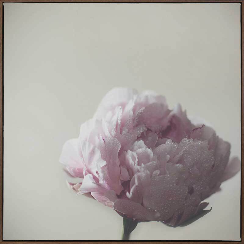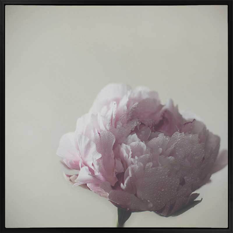 Standing Strong Canvas Art Print: A single peony stands tall, its narrow stem supporting a full and blossoming head of petals, lit by gentle morning light. 2017 AUTUMN/WINTER COLLECTION: ILLUSION