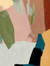 Statement Stripes I Canvas Art Print - Contemporary and colourful, this statement abstract piece works beautifully with everything from modern interiors to eclectic styling with its odd colour pairings and randomised shapes. Palette includes light yellow, khaki green, pink, brown, deep red, blue, grey and black.