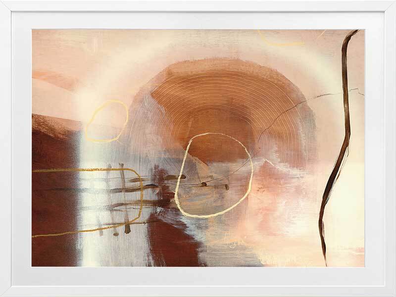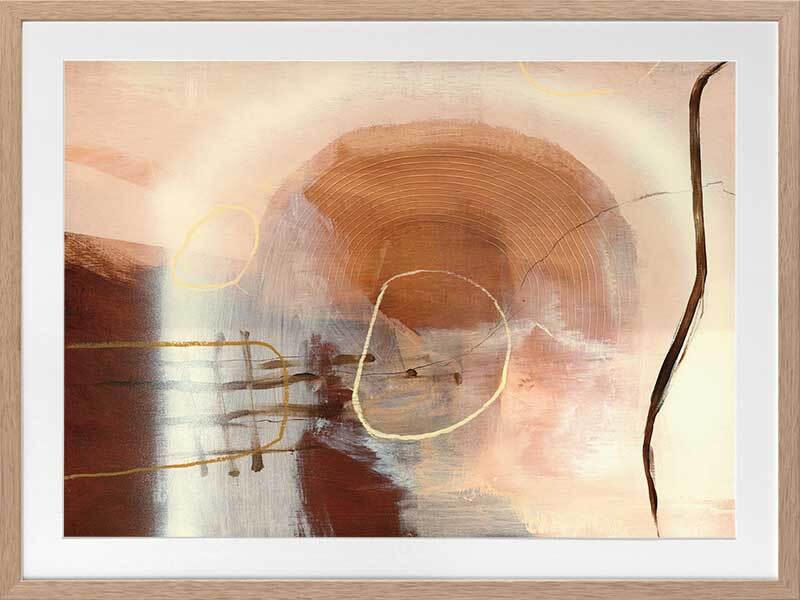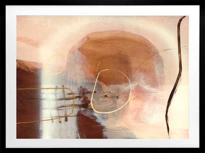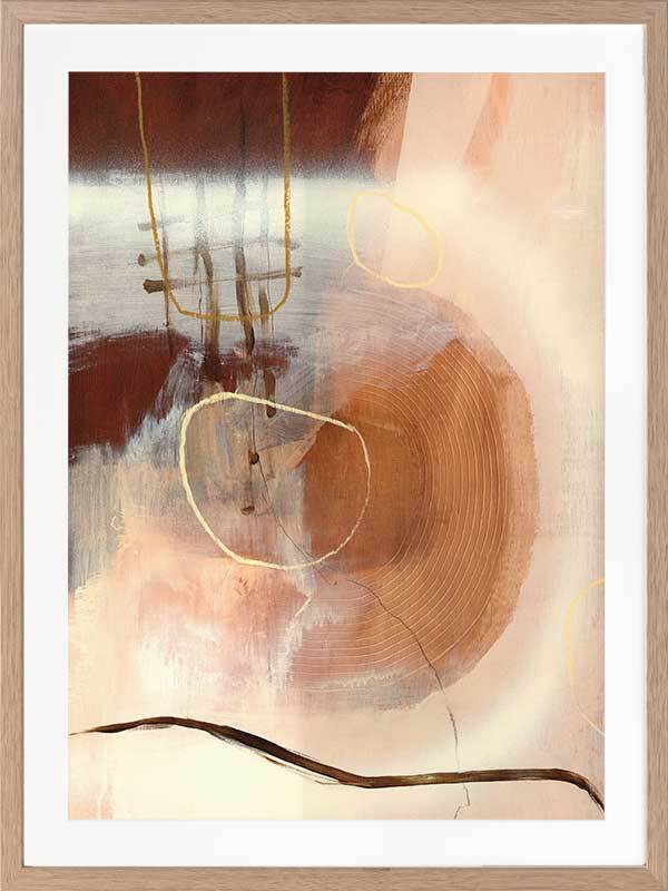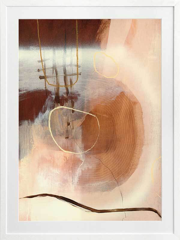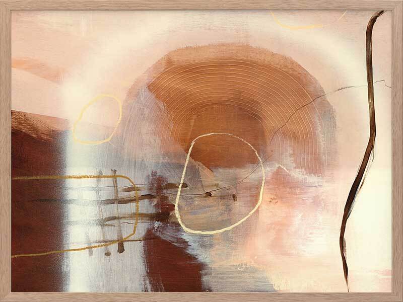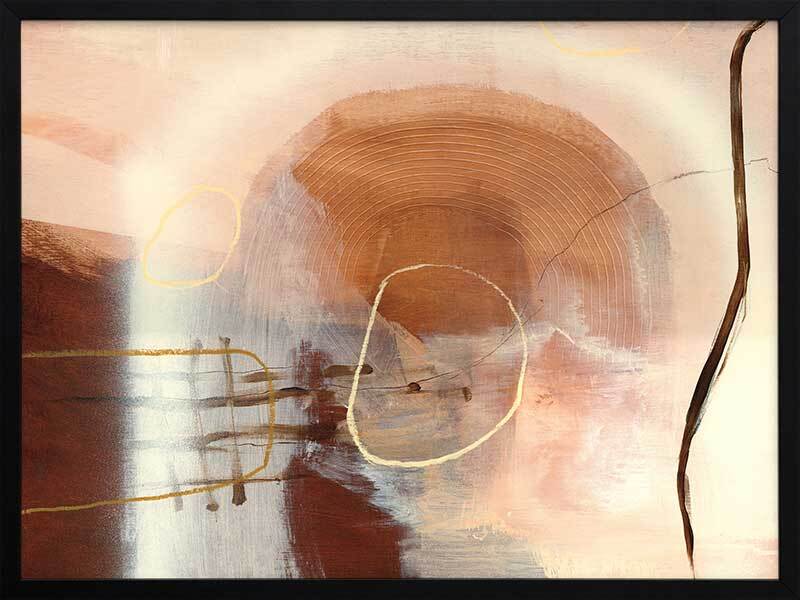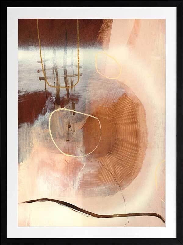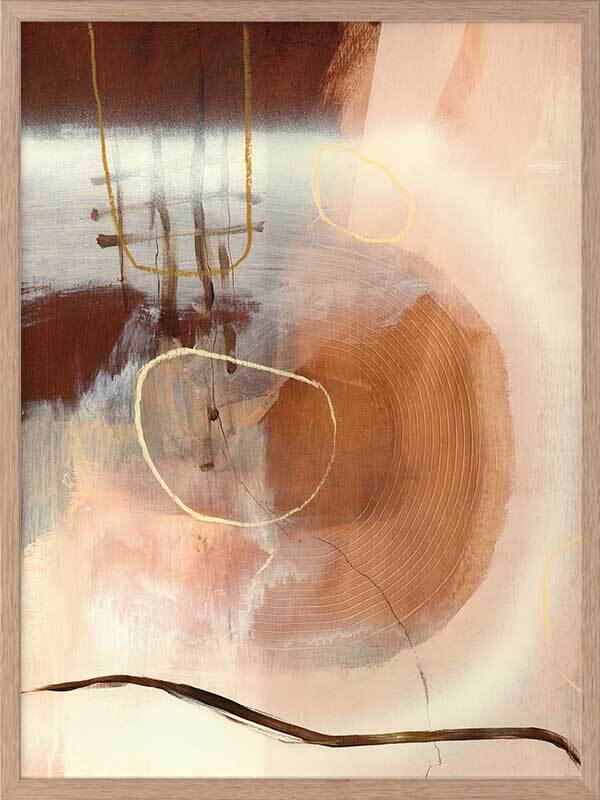 Sticks and Stones Framed Art Print - Perfect to complement neutral shades in your space, or to soften colourful furniture and homeware, this abstract piece uses several shades of beige and warm brown, with misshapen circle etchings, random linework, and layered textures.