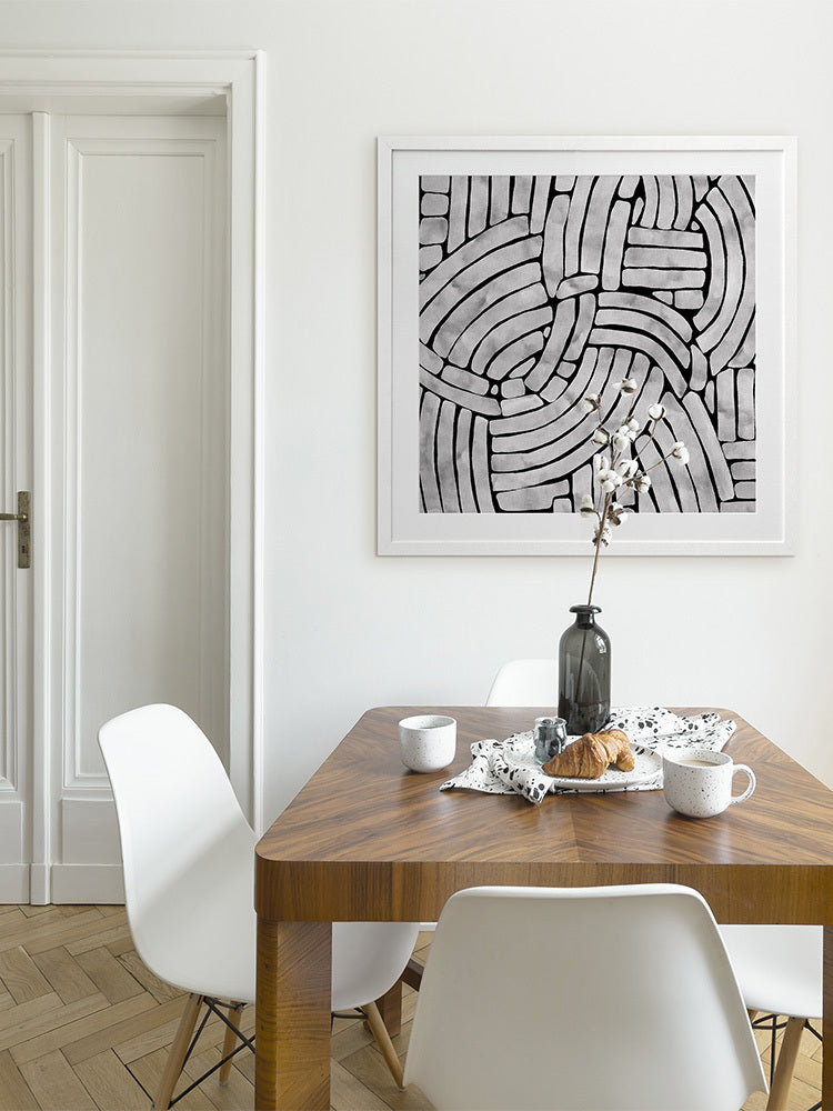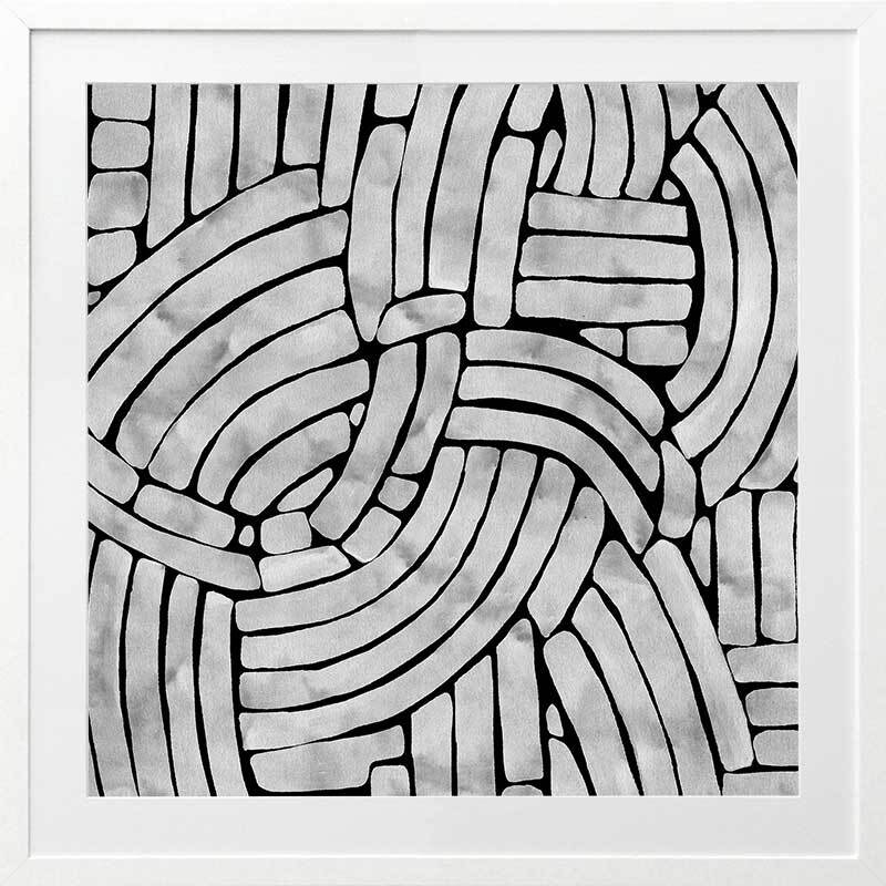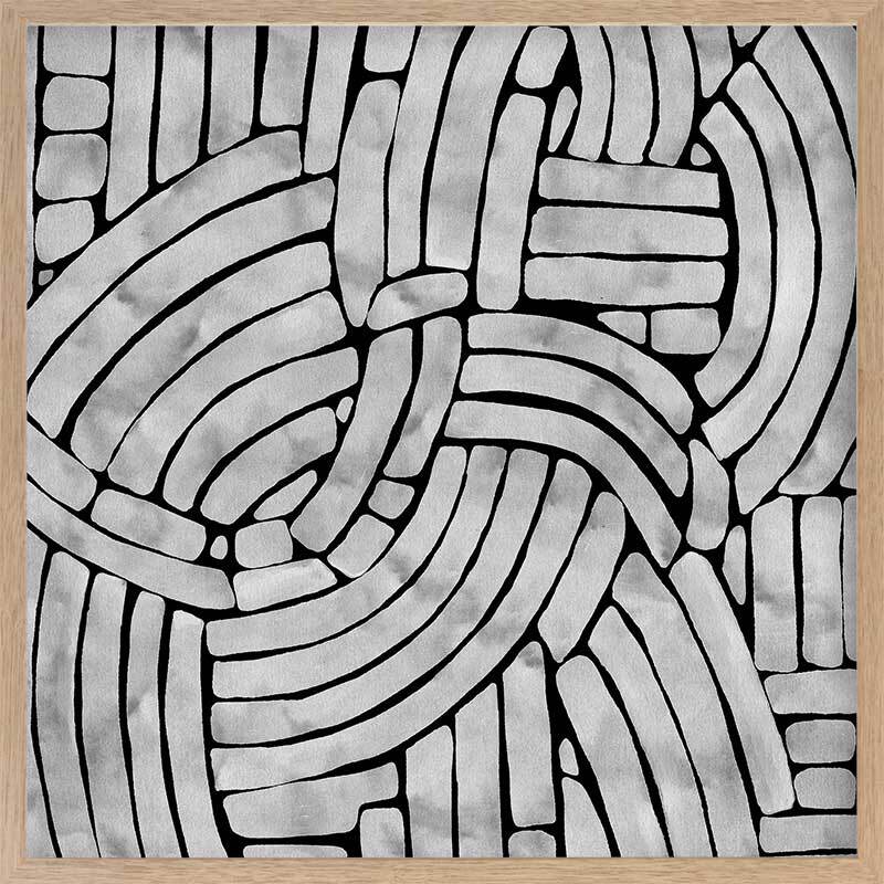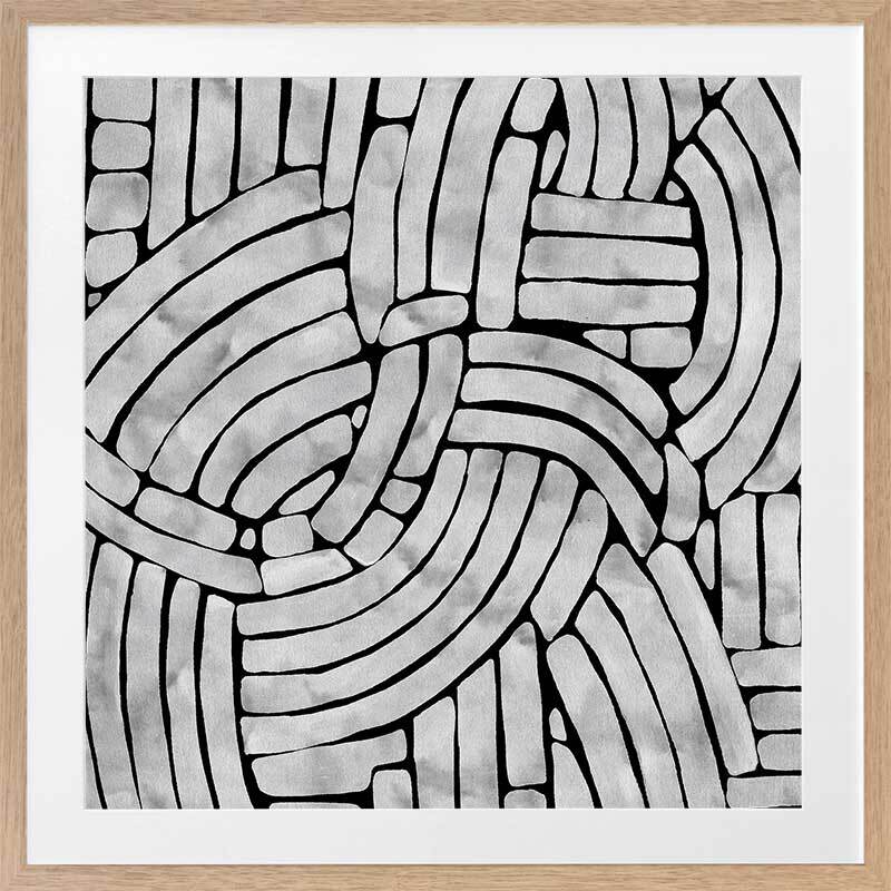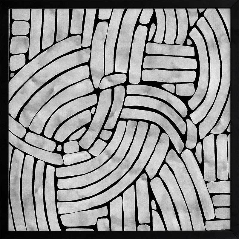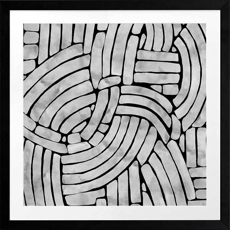 Stone Path Framed Art Print - If you love making a statement in the simplest of ways, this is the perfect piece. Abstract, graphic lines are carefully placed to create a unique pattern, while the overall painterly feel gives it some depth and character. The monotone palette of black and light grey form a stark contrast.