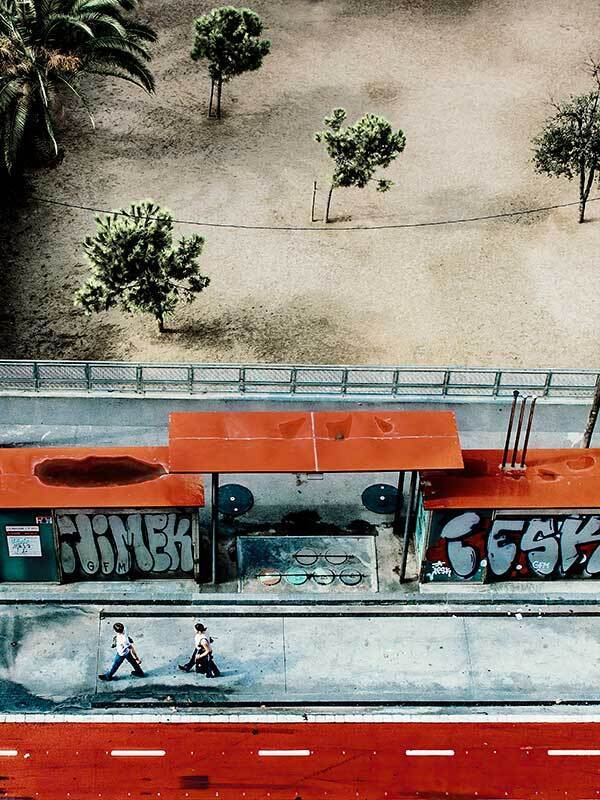 Streets of Cuba Art Print - This photographic art print is an aerial view of an urban street scene. The brilliant red road markings bring your attention to the base of the print which then gives you time to slowly gaze back up to take in the entire scene and admire the entire composition which includes an empty green space at the top. This wall art print would look great as a box framed canvas in an industrial styled space. THE CURATED SERIES II A handpicked gallery of wall art photography that is daringly and quirky, these photographic pieces are exploding with richness of colour and texture.