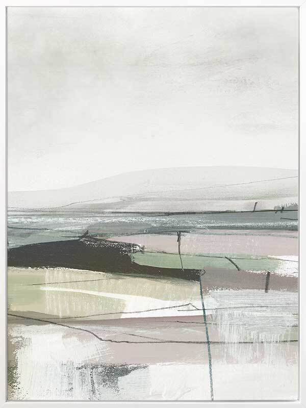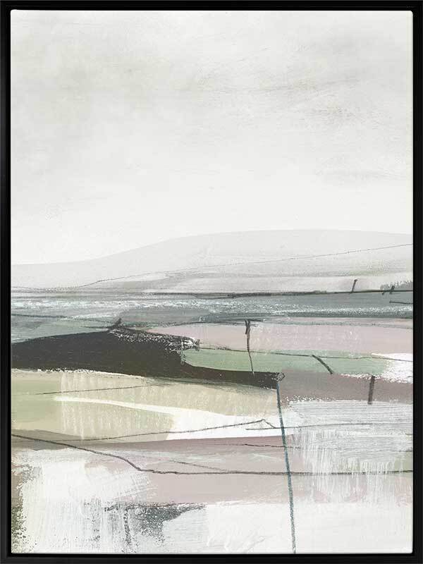 Sublime Vista II Canvas Art Print - This creative, abstract artwork reflects a very moody dark landscape, created with a multicoloured palette. Green and purple tones are repeated throughout with contrasting black and white for the landscape gradient. Want a complete set? Pair with our Sublime Vista I for a cohesive set.
