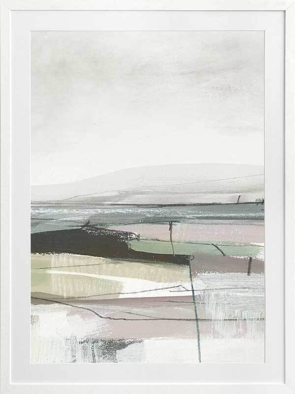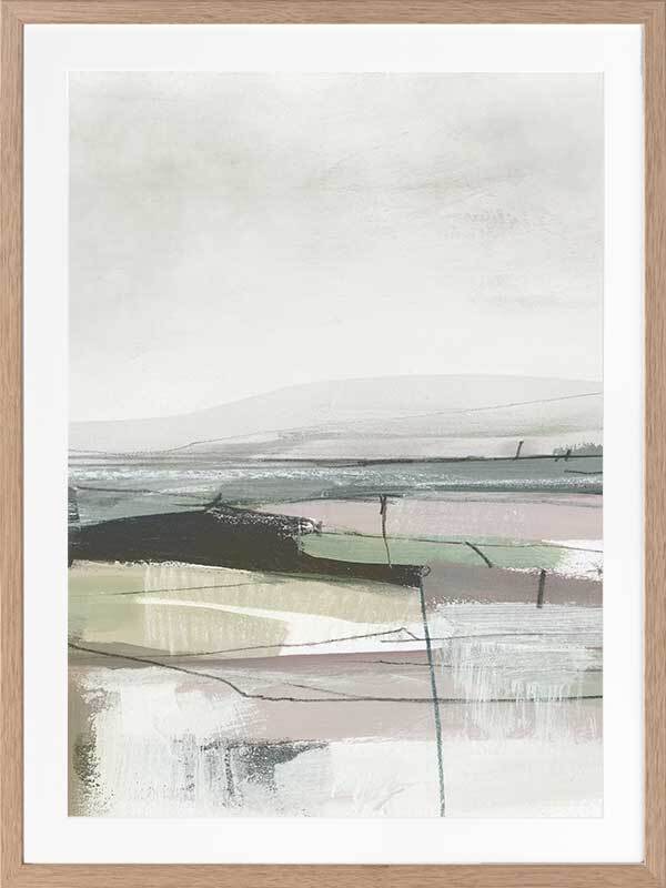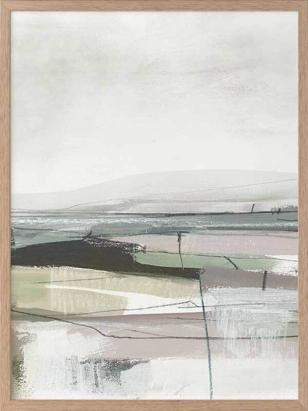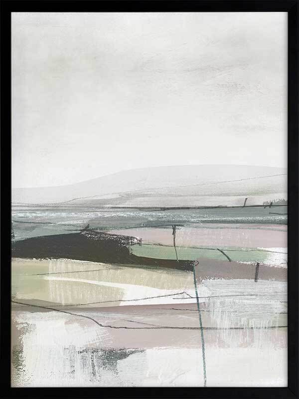 Sublime Vista II Framed Art Print - This creative, abstract artwork reflects a very moody dark landscape, created with a multicoloured palette. Green and purple tones are repeated throughout with contrasting black and white for the landscape gradient. Want a complete set? Pair with our Sublime Vista I for a cohesive set.