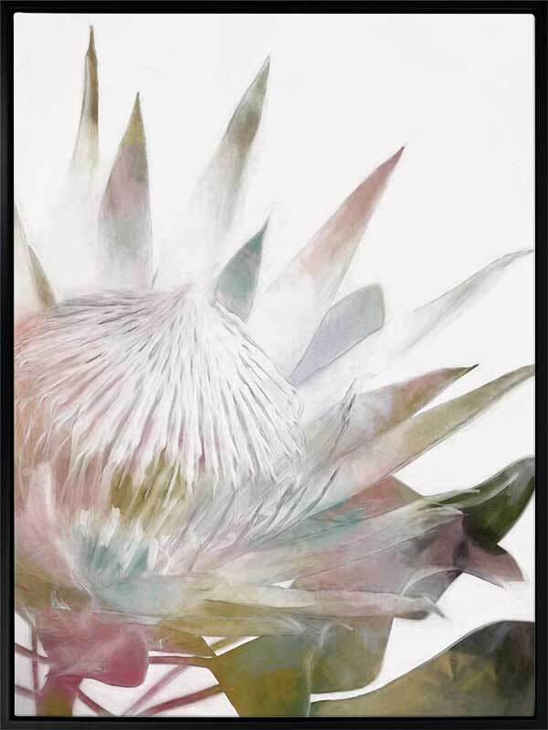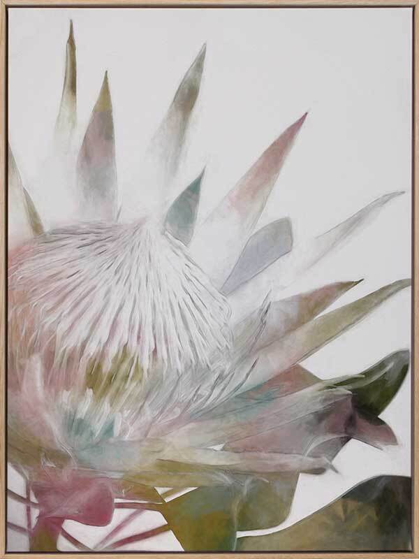 Sugar Bush I Canvas Art Print - Abstract Protea with pink, green and muted pastels, a modern twist on a floral still life. 2016 WINTER COLLECTION: INSPIRE
