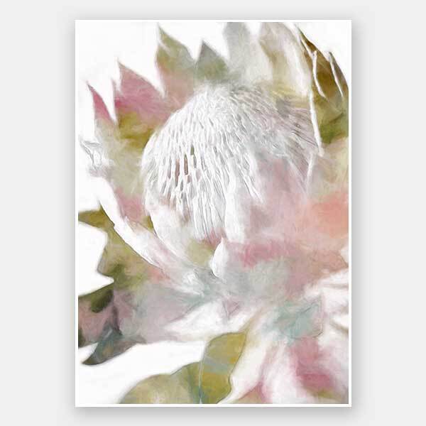 Sugar Bush II Unframed - Abstract Protea with pink, green and muted pastels, a modern twist on a floral still life. 2016 WINTER COLLECTION: INSPIRE