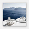 Summer Luxuries Unframed Art Print - Bring depth and character to your space with this calming photographic wall art, featuring a luxury coastal resort with lounge chairs overlooking the big blue ocean and mountains. Palette is simple with blues and fresh white shades that will have you wanting to travel to Greece.